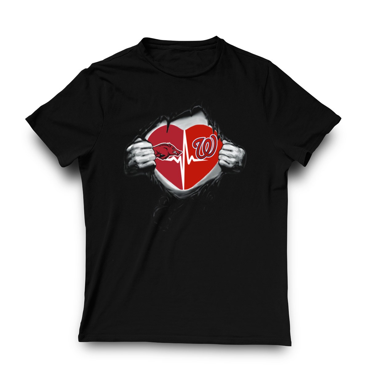 Show your love for the Arkansas Razorbacks and Washington Nationals with this eye-catching Heartbeat Pullover Ripped T-Shirt. Perfect for dedicated fans who want to showcase their team spirit, this shirt is ideal for casual outings, themed events, or simply lounging at home. Crafted with a unique fan-made design and printed in the USA, it combines comfort with style, making it a must-have for any sports enthusiast.