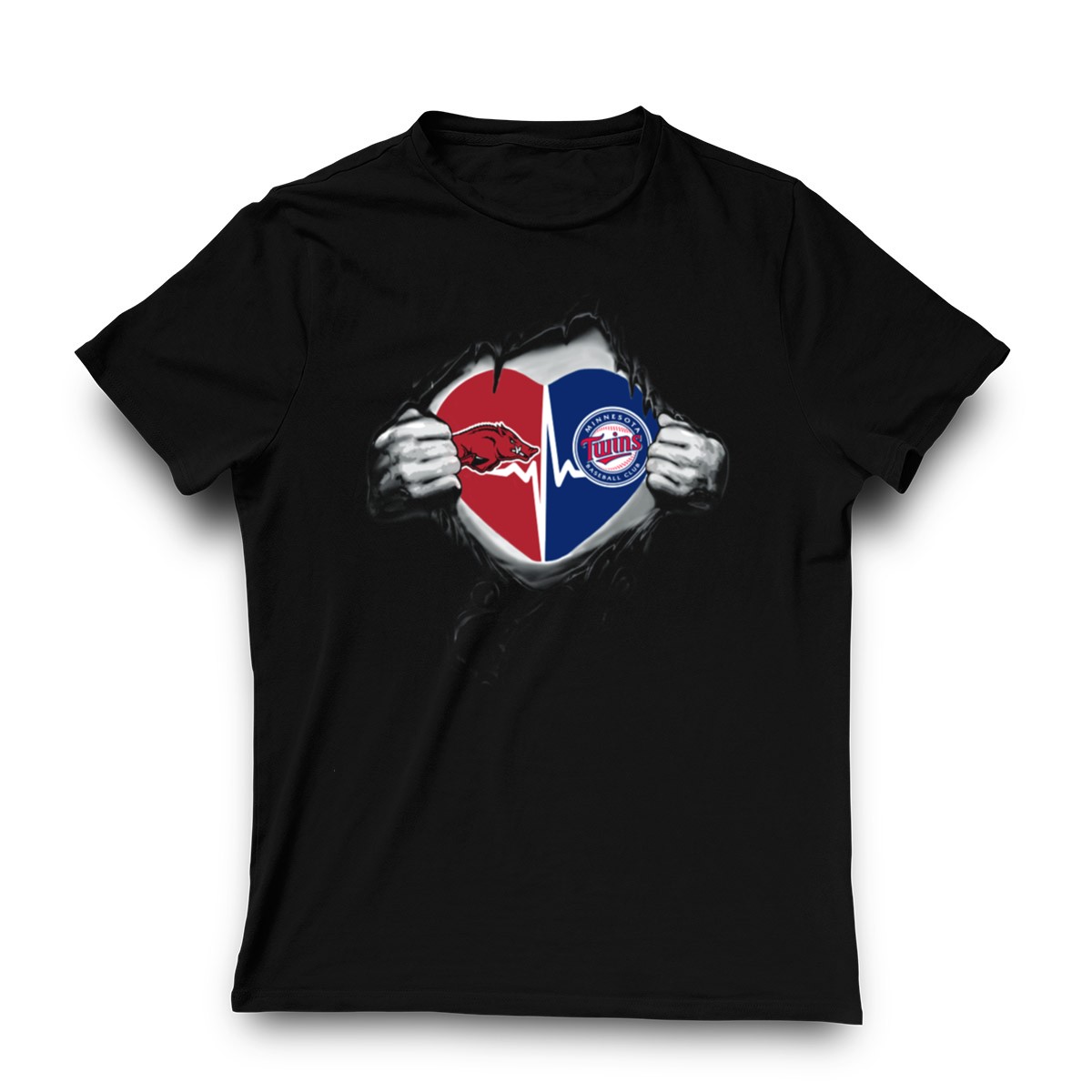 Show your love for both the Arkansas Razorbacks and Minnesota Twins with this unique fan-made graphic T-shirt! Perfect for sports enthusiasts and dedicated fans alike, this shirt is ideal for casual outings, themed events, or simply showcasing your team spirit in everyday wear. The combination of two iconic teams in one stylish design makes this T-shirt a standout piece in any fan’s wardrobe.