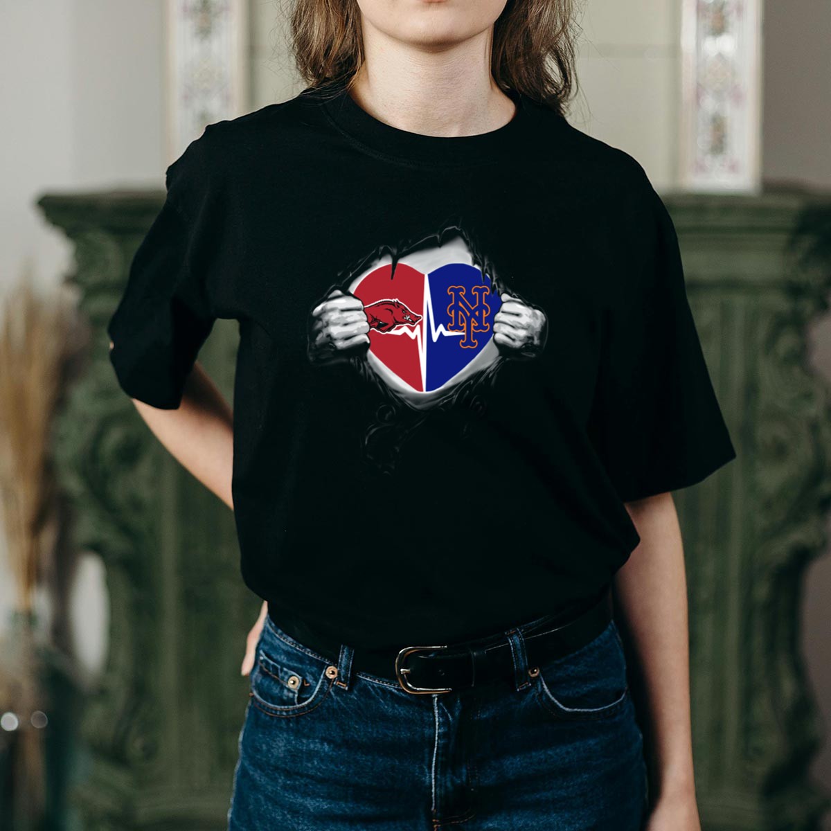 Show your passion for both the Arkansas Razorbacks and New York Mets with this unique Heartbeat Logo Collaboration T-Shirt! Designed for fans who love to celebrate their teams in style, this shirt is perfect for casual outings, themed events, or everyday wear. Made from high-quality materials and printed in the USA, it combines comfort with a fun, spirited design that stands out in any crowd.