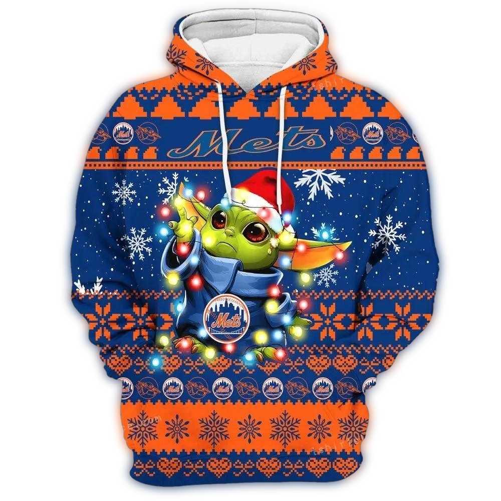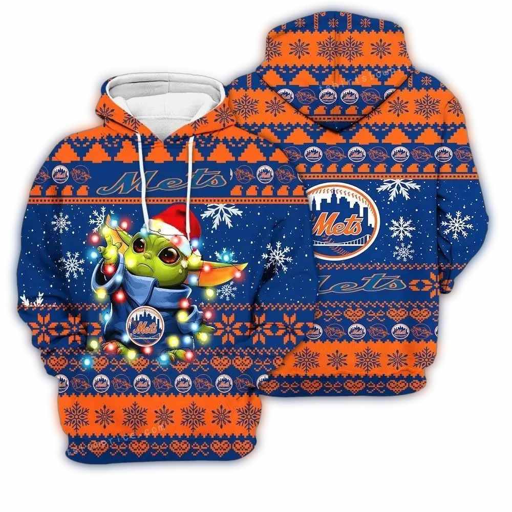 Embrace the whimsical charm of the New York Mets Baby Yoda Star Wars All-Over Print Hoodie, a perfect blend of fandom and comfort. Designed for fans who appreciate a relaxed, stylish look, this hoodie is ideal for casual outings or cozy days at home. Its unique all-over print brings a playful touch to your wardrobe, making it a standout piece for both men and women.