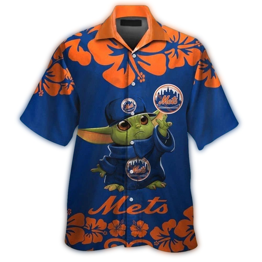 Baby Yoda Tropical Hawaiian Shirt For New York Mets Fans