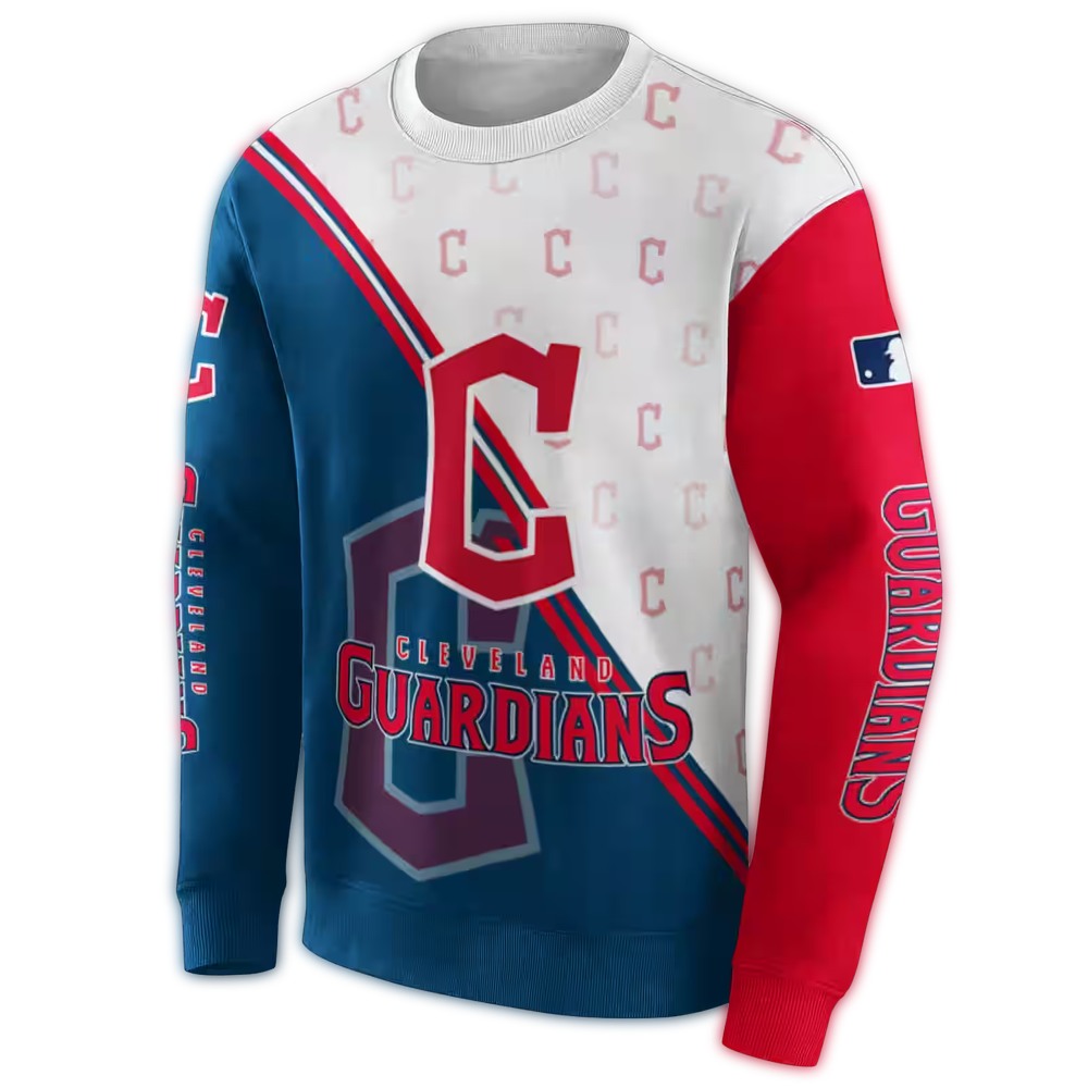 Cleveland Guardians Diagonal Stripe All-Over Print Sweatshirt For Fans
