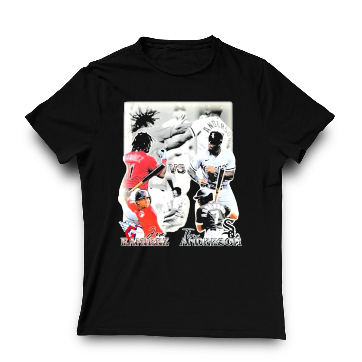 Show your support for the ultimate showdown in baseball with our Cleveland Guardians Jose Ramirez vs Chicago White Sox Tim Anderson T-Shirt! Perfect for true fans and casual wear alike, this stylish shirt celebrates the rivalry between two of the league’s most exciting players. Made for comfort and designed for durability, it’s an essential piece for game days, themed events, or just hanging out with friends. Stand out with a fan-made design printed proudly in the USA!