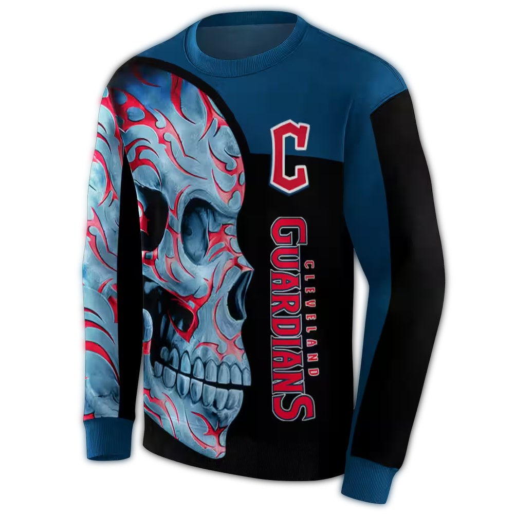 Embrace your team spirit with our Cleveland Guardians Skull Motif All-over Print Sweatshirt. Perfect for fans who want to showcase their loyalty in style, this sweatshirt is ideal for casual outings, game days, or lounging at home. Its unique skull motif adds a modern edge, making it a standout piece in any streetwear wardrobe.