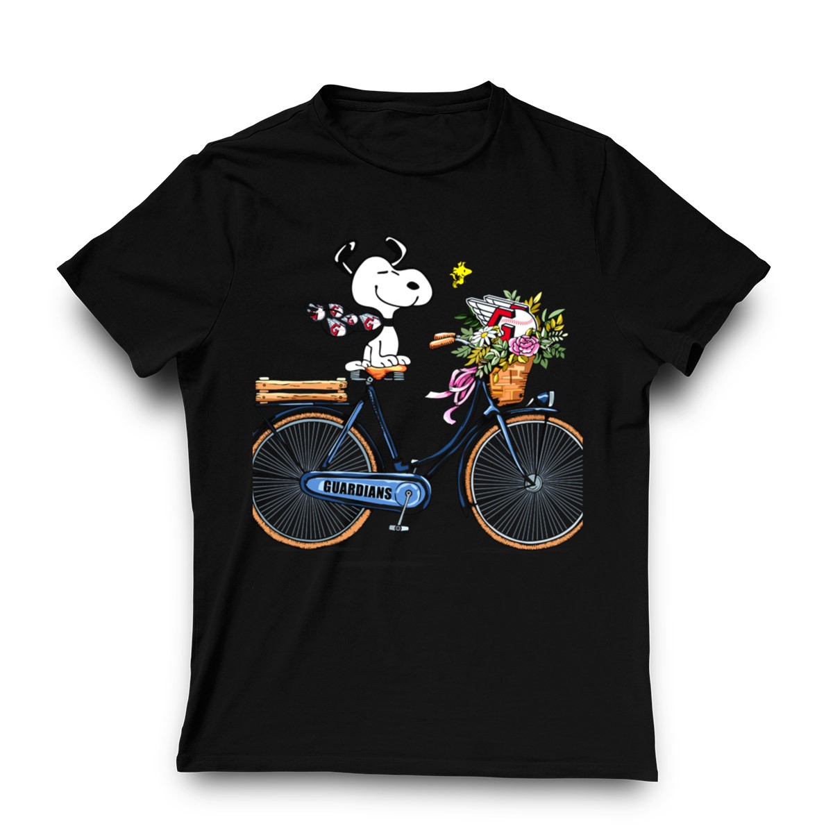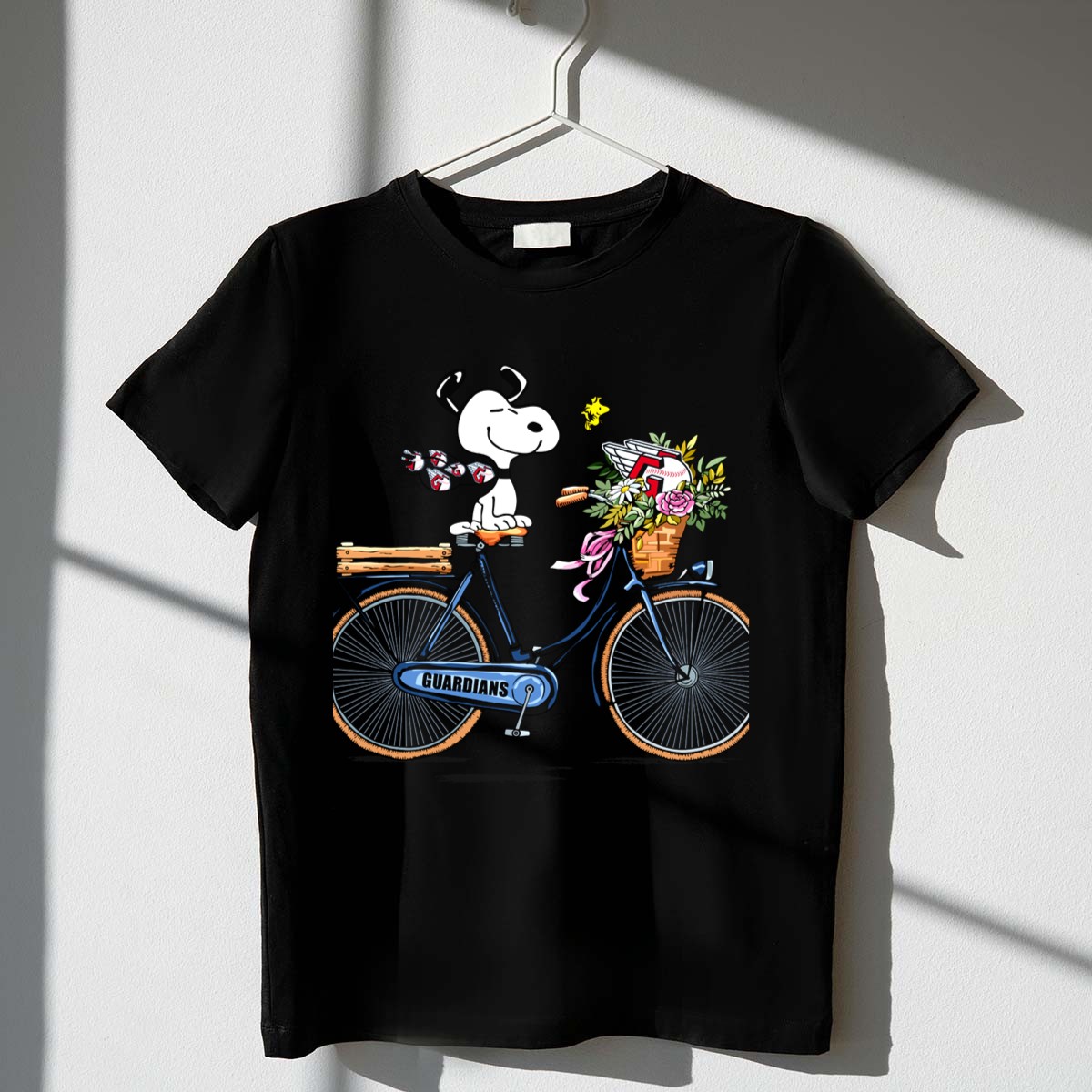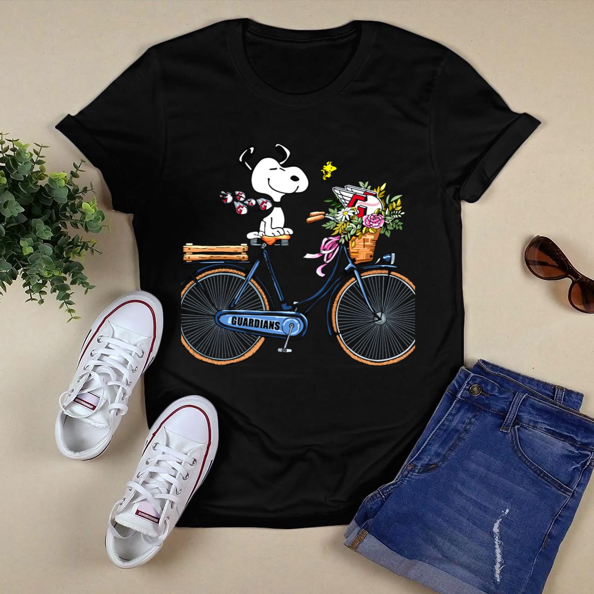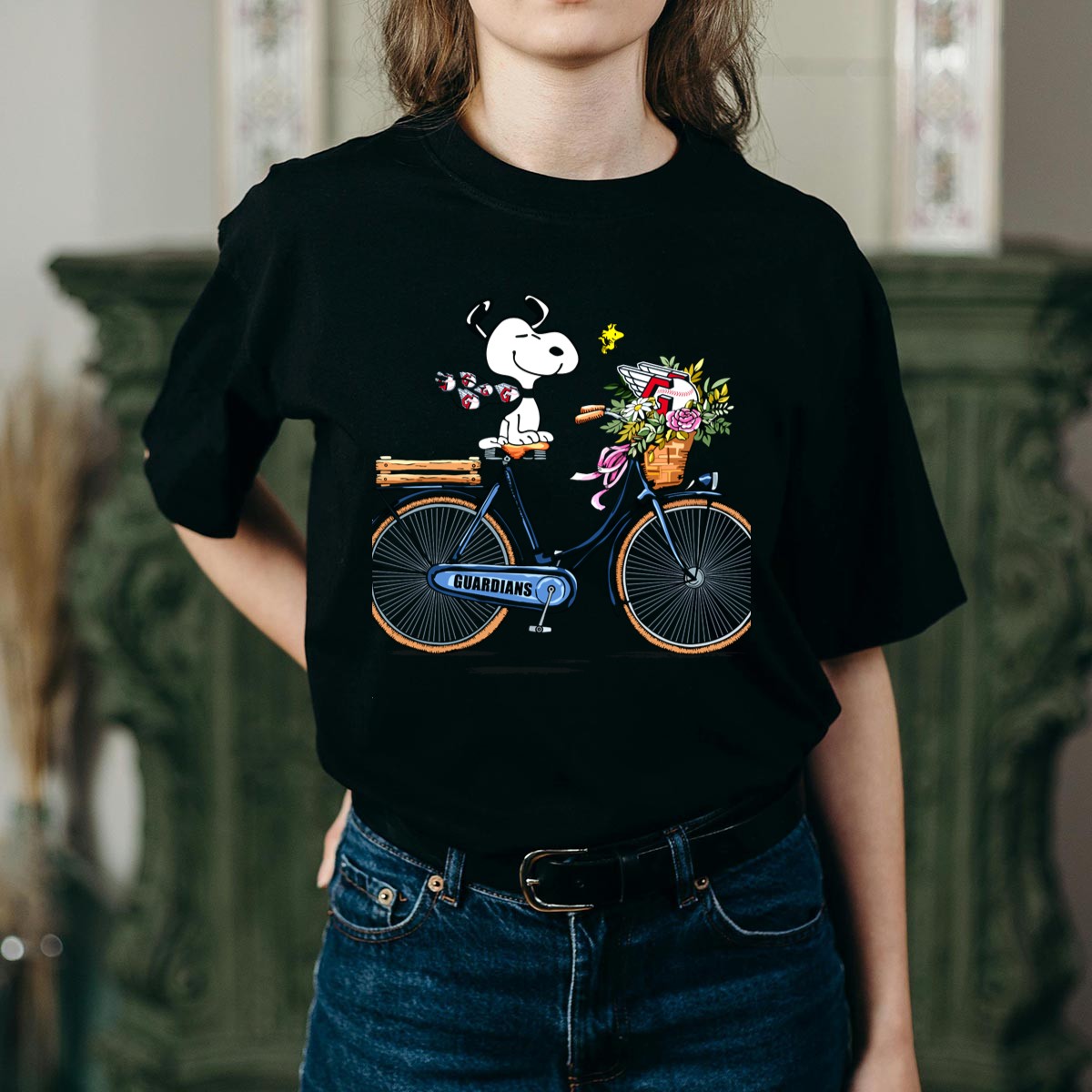 Cleveland Guardians Snoopy Bicycle T-Shirt With Flowers And Baseball Bow Tie