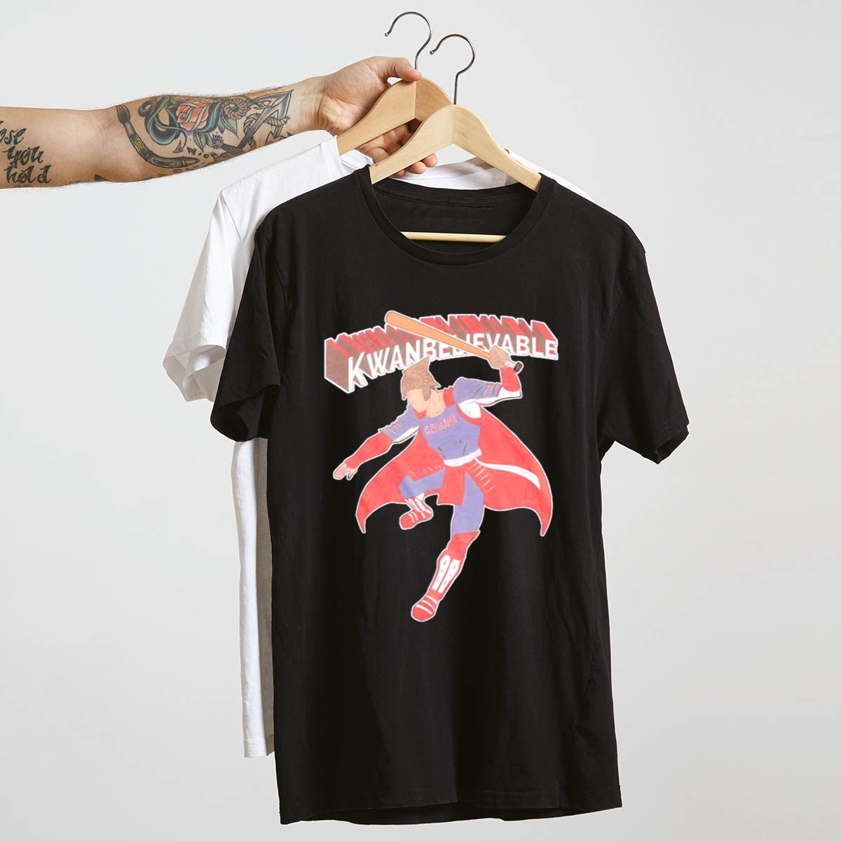 Show your unwavering support for the Cleveland Guardians with our Kwanbelievable Warrior Hero Baseball T-Shirt! This fan-made design is perfect for die-hard fans and casual supporters alike, making it an ideal choice for game days, themed events, or just hanging out with friends. Crafted with comfort in mind, this t-shirt combines a striking graphic with a classic fit to ensure you look and feel great while cheering on your favorite team. Printed in the USA, it’s a must-have for any Guardians enthusiast!