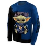 Embrace your love for the Houston Astros and the adorable Baby Yoda with this unique all-over printed sweatshirt. Perfect for fans of all ages, this cozy and stylish piece is ideal for casual outings, lounging at home, or even hitting the gym. Its vibrant design sets it apart, making it a must-have addition to your streetwear collection.