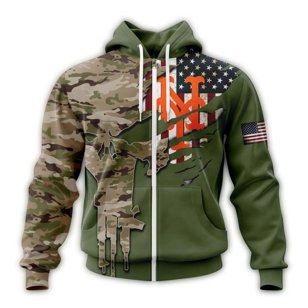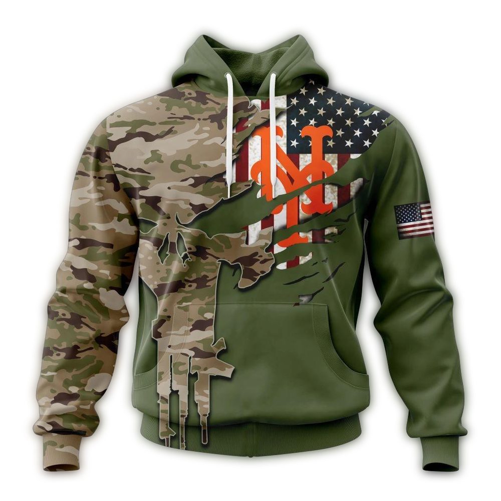 Show your team spirit and honor the brave with our Personalized New York Mets Skull Punisher Camo All-Over Print Hoodie. This unique design is perfect for fans who want to express their passion for the Mets while celebrating Veteran’s Day. Whether you’re heading to the game or enjoying a casual outing, this hoodie combines style and comfort, making it a standout piece in any wardrobe.