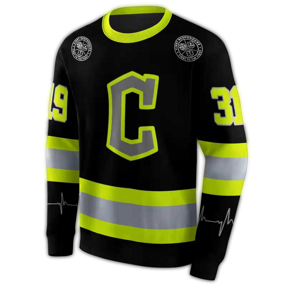 Elevate your streetwear game with our Personalized Cleveland Guardians Safety Motif Black Neon Green All-Over Print Sweatshirt. Designed for fans who crave comfort and style, this sweatshirt is perfect for casual outings, lounging at home, or hitting the gym. Its striking graphic design adds a unique flair, making it a standout piece in any wardrobe.