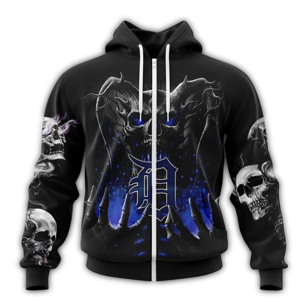 Unleash your fierce spirit this Halloween with our Personalized Detroit Tigers Skull All Over Print Hoodie! Designed for die-hard fans, this hoodie is perfect for casual outings, Halloween festivities, or simply showing off your team pride. Its unique graphic print combines the edgy skull design with the iconic Detroit Tigers logo, making it a standout piece in any wardrobe.