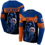 Embrace the unique style of the Personalized Grim Reaper Hold Logo New York Mets All Over Print Sweatshirt, a must-have for any true Mets fan. Perfect for casual outings, lounging at home, or even hitting the gym, this sweatshirt combines sporty vibes with a modern edge. Its eye-catching design makes it a standout piece in any streetwear collection, ensuring you stay stylish and comfortable wherever you go.
