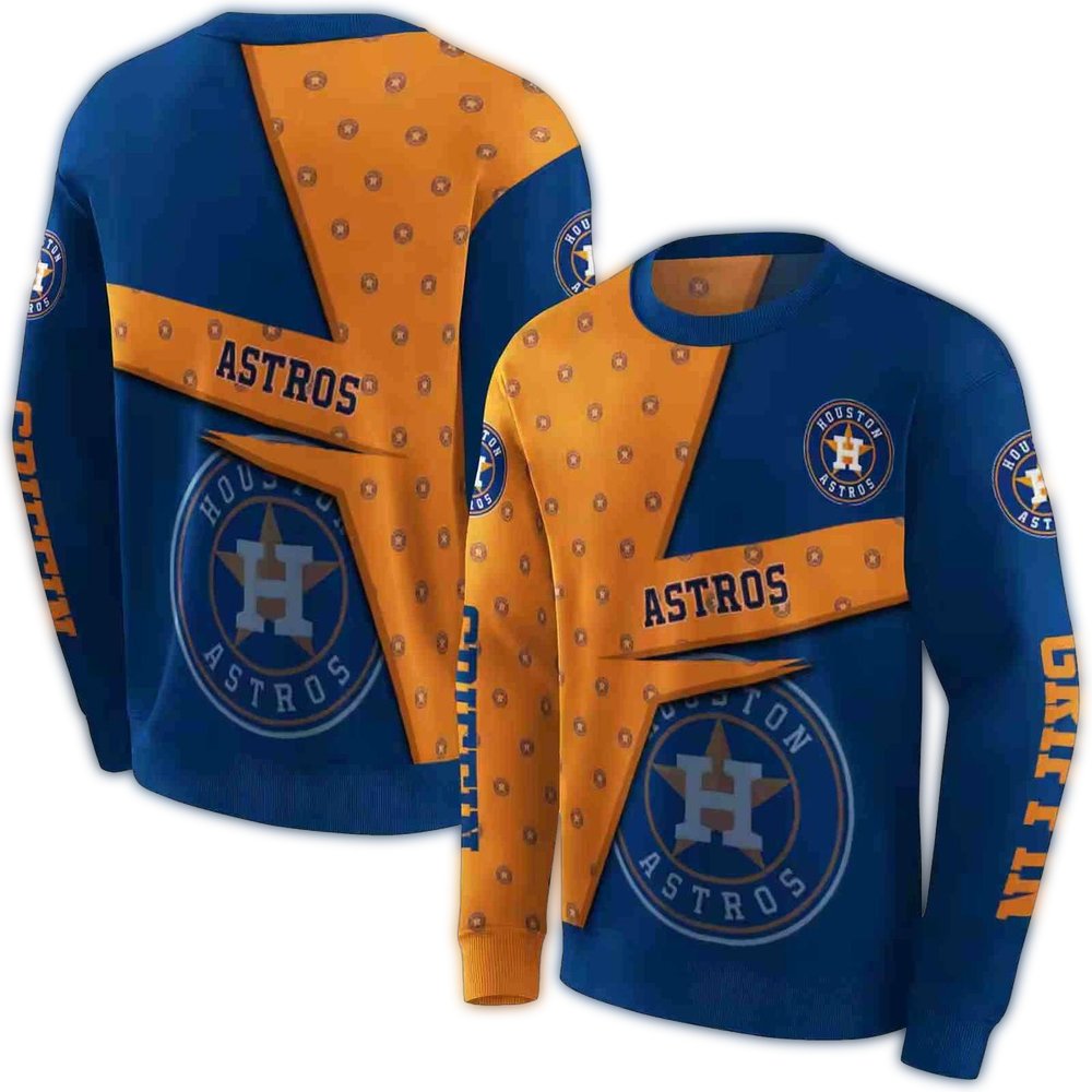Crafted from high-quality polyester with a 260GSM high-density brushed fleece lining, this sweatshirt offers a soft and cozy feel while ensuring breathability and moisture-wicking properties. The vibrant all-over print is designed to last, maintaining its bold colors wash after wash, so you can wear your Astros pride with confidence everywhere you go.