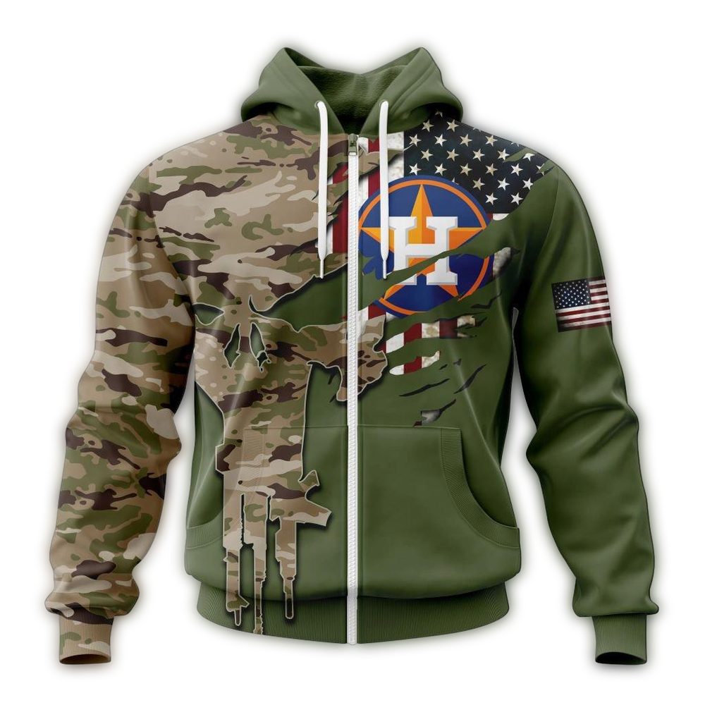 Show your support for the Houston Astros in a unique and stylish way with our Personalized Houston Astros Skull Punisher Camo All-Over Print Hoodie. Perfect for veterans and fans alike, this hoodie combines comfort with a bold statement, making it ideal for casual outings or cozy nights in. Whether you’re cheering from the stands or hanging out with friends, this hoodie is designed to keep you looking and feeling great.