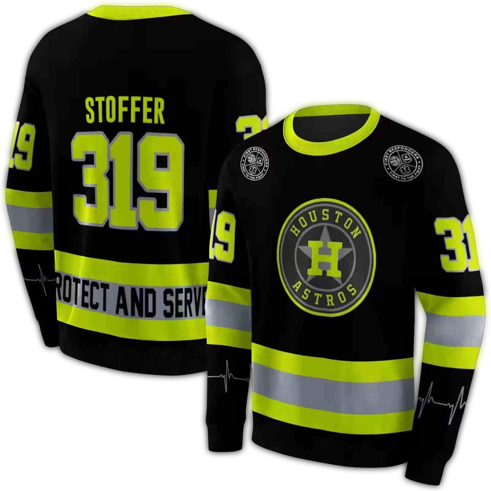 Step up your streetwear game with our Personalized Houston Astros Safety Motif All-Over Print Sweatshirt. Perfect for fans and fashion enthusiasts alike, this cozy piece is designed for casual outings, game days, or simply lounging at home. Its unique all-over print showcases your Astros spirit, making it a standout addition to any wardrobe.
