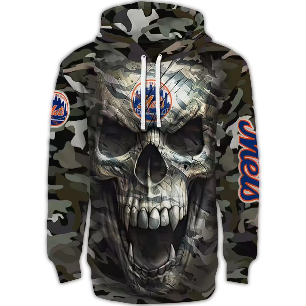 Custom New York Mets Camo Skull All-Over Print Hoodie For Fans