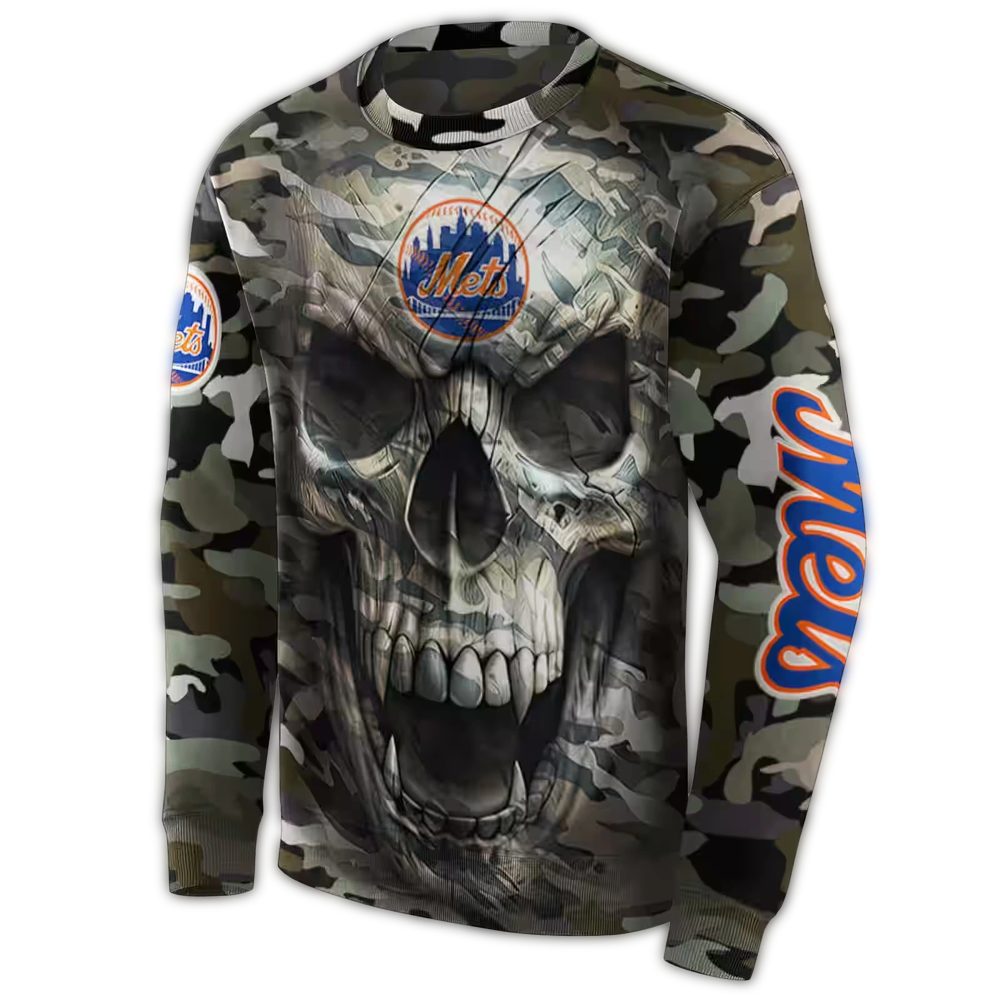 Custom New York Mets Camo Skull All-Over Print Sweatshirt For Fans