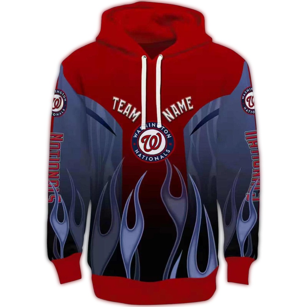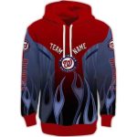 Show your support for the Washington Nationals in style with this Personalized Washington Nationals Flame All-over Print Hoodie. Perfect for fans who want to showcase their team spirit, this hoodie is ideal for casual outings, game days, or simply lounging at home. Its unique flame design sets it apart, making it a standout piece in any wardrobe.