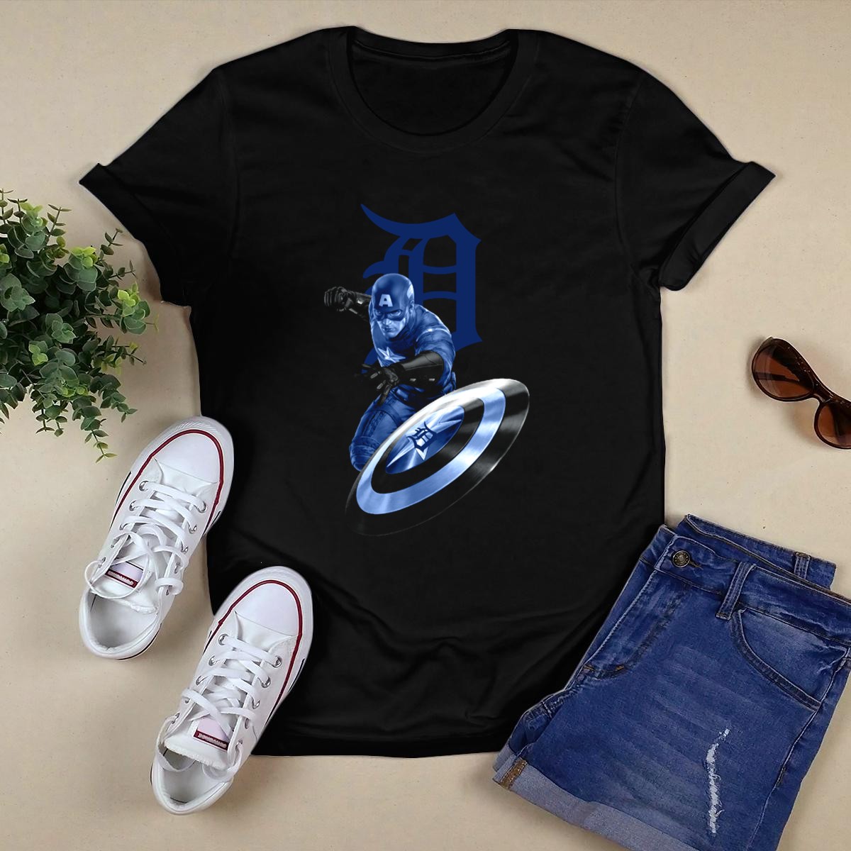 Detroit Tigers Captain America Shield Logo Fan T-Shirt For Sports Lovers