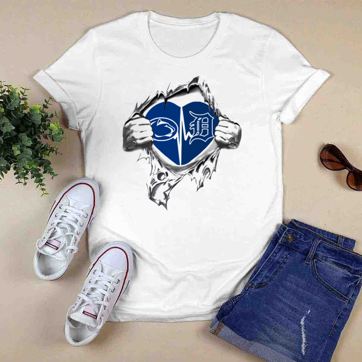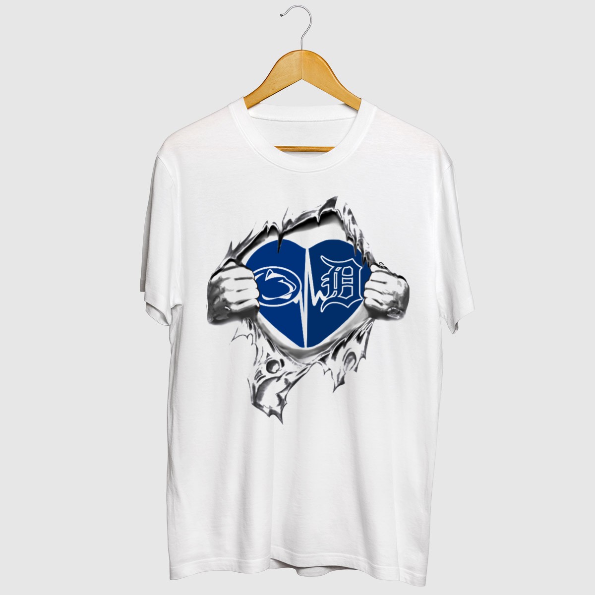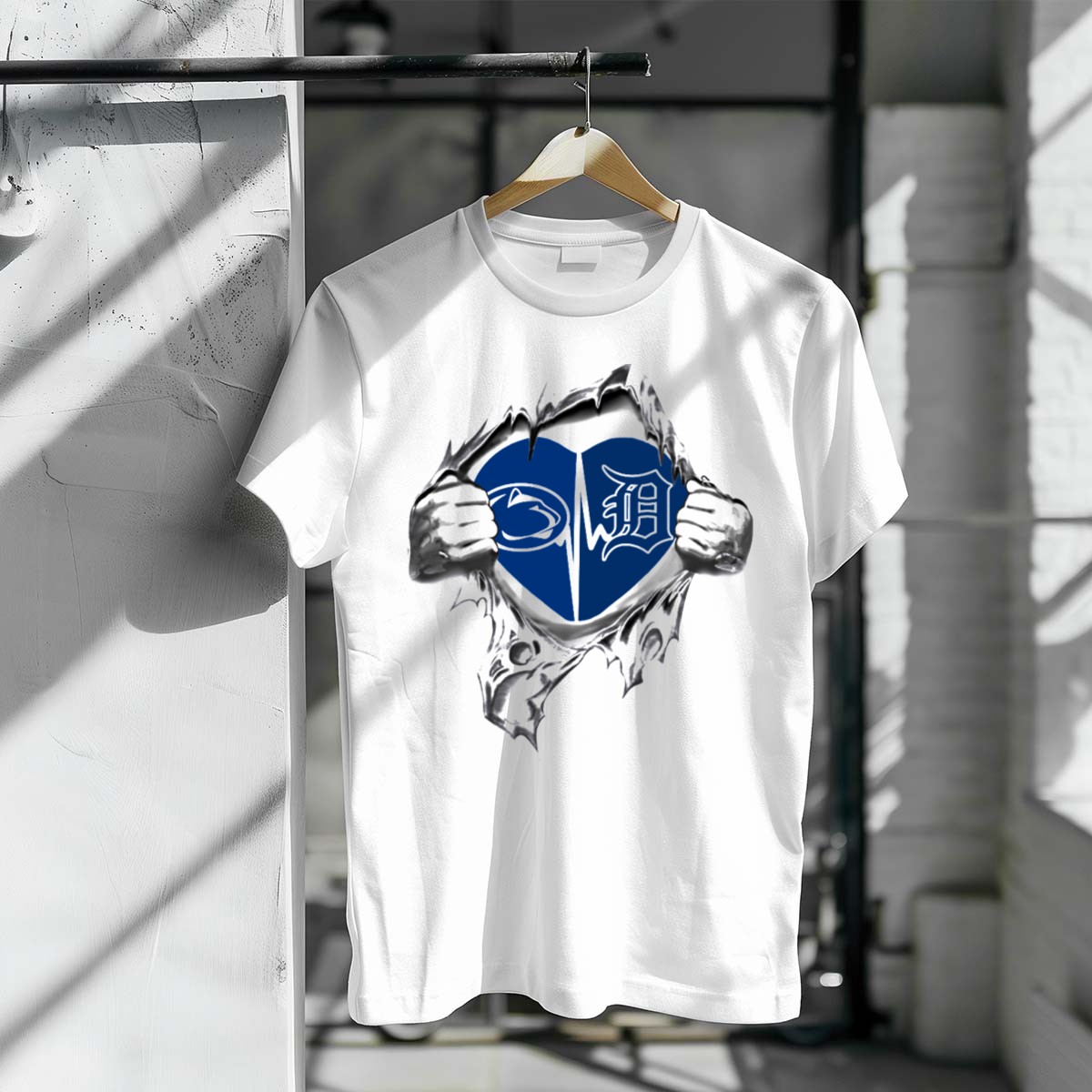 Detroit Tigers & Penn State Heartbeat Logo Fusion T-Shirt For Fans