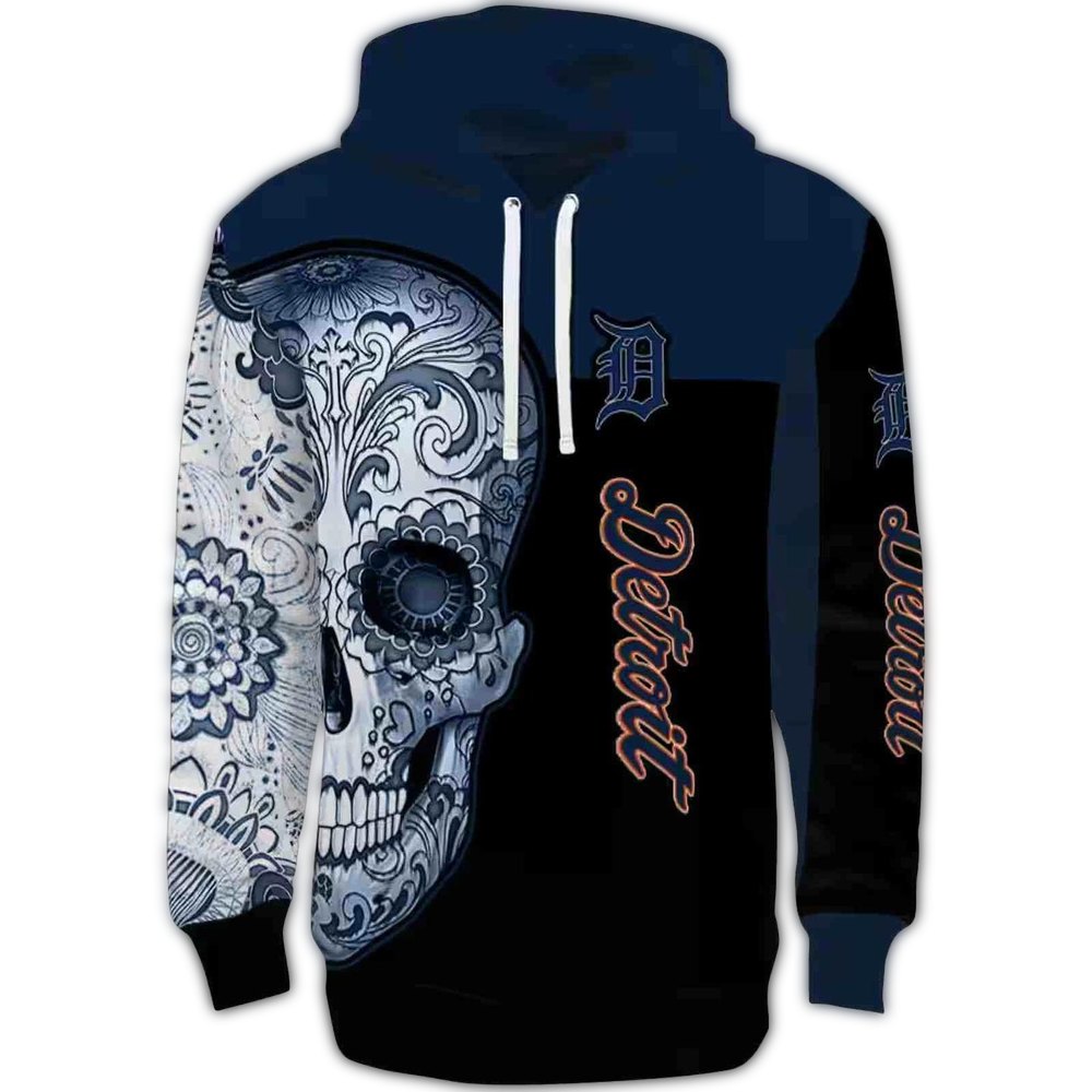 Embrace your love for the Detroit Tigers with our Sugar Skull All Over Print Hoodie, designed for die-hard fans and casual wearers alike. Perfect for chilly days at the ballpark or laid-back outings, this hoodie combines team spirit with a unique design that stands out from the crowd, making it a must-have in any wardrobe.