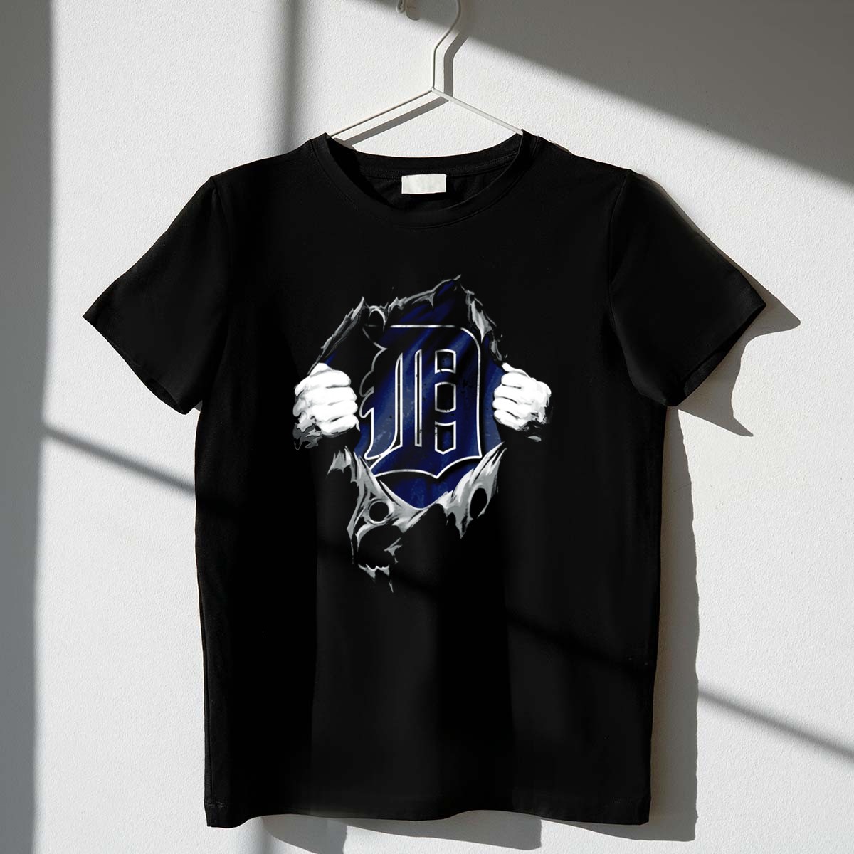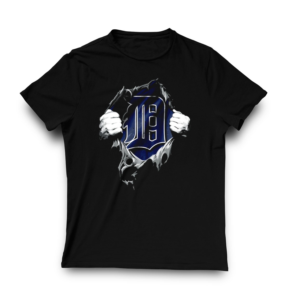 Show off your love for the Detroit Tigers with this unique Torn Detroit Tigers Logo Hands Pulling Through Ripped Fabric T-Shirt. Perfect for die-hard fans and casual wearers alike, this eye-catching shirt combines a bold design with a comfortable fit, making it ideal for game days, themed events, or simply lounging at home. Made in the USA, this fan-made design is sure to turn heads and showcase your team spirit in style.