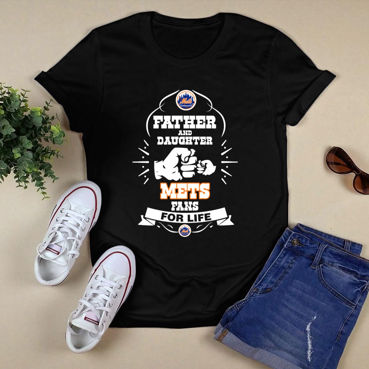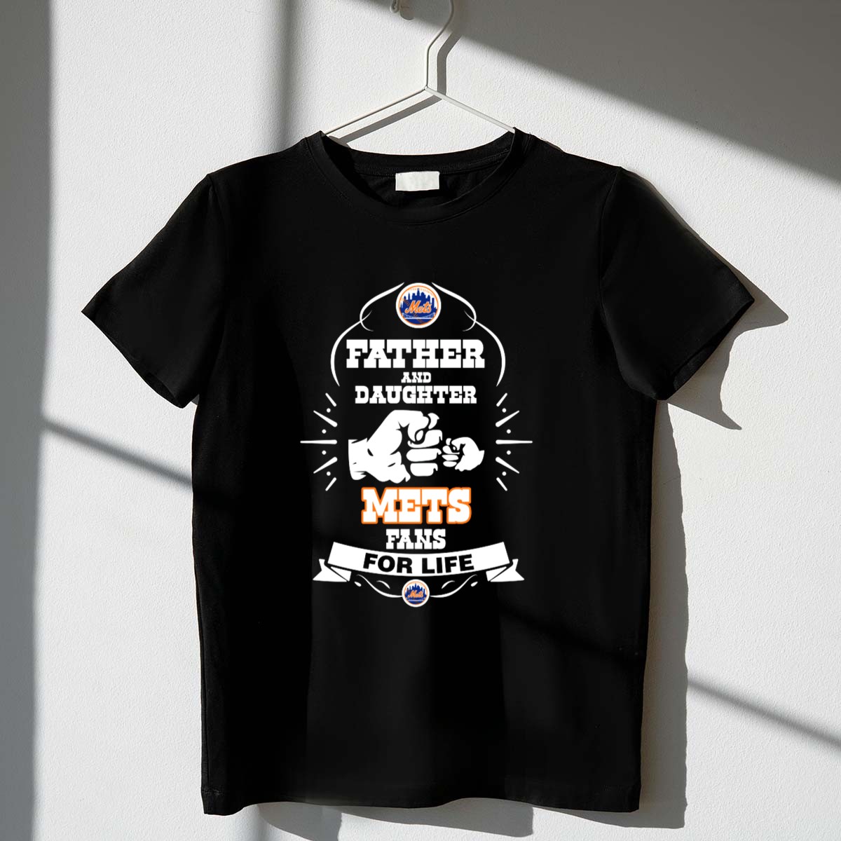 Show your love for the New York Mets with our Father And Daughter Mets Fans For Life T-Shirt! Perfect for die-hard fans, this shirt features a playful fist bump design that symbolizes the special bond between fathers and daughters who share a passion for the game. Ideal for casual outings, themed events, or simply cheering from the couch, this tee is a must-have for any Mets family looking to showcase their team spirit with pride.