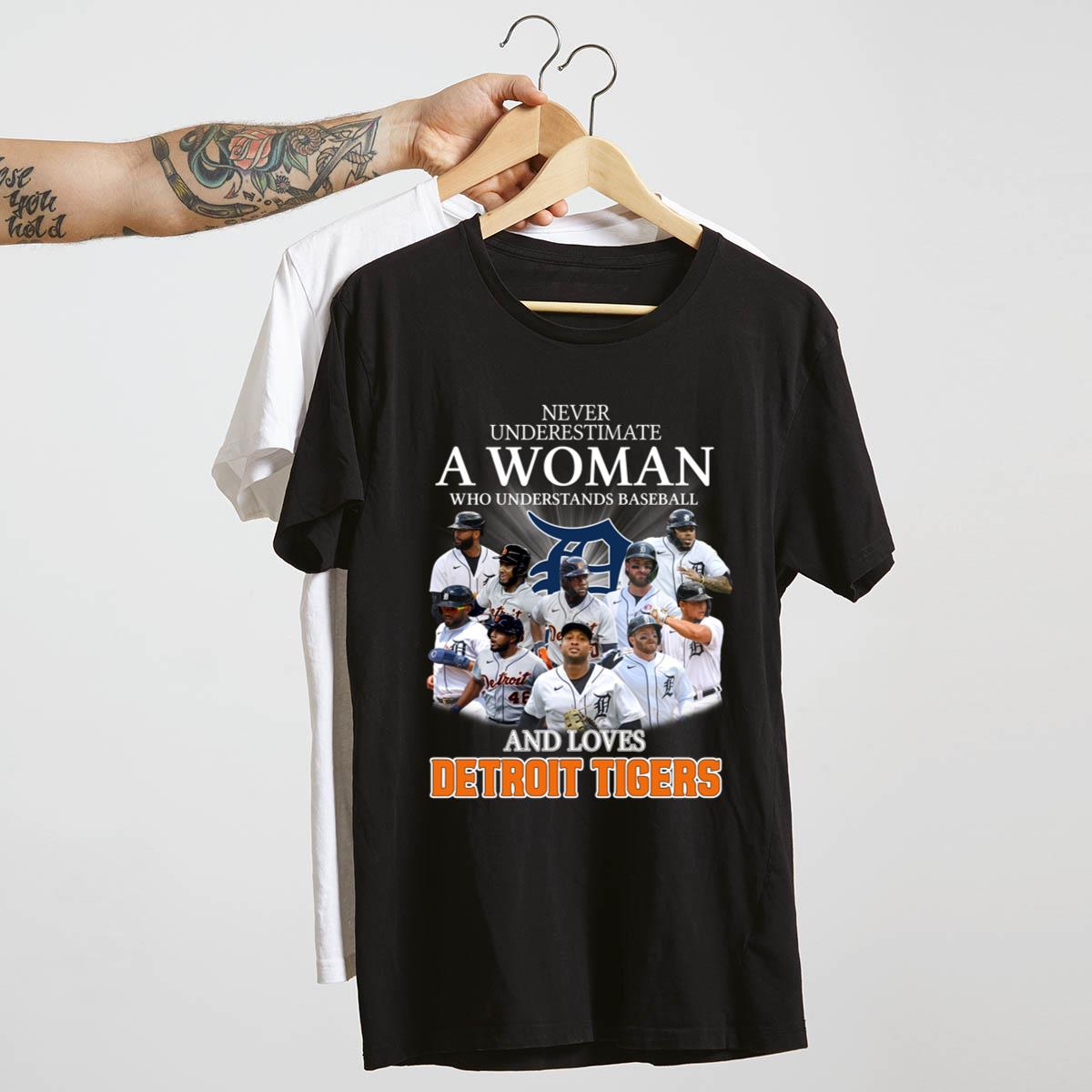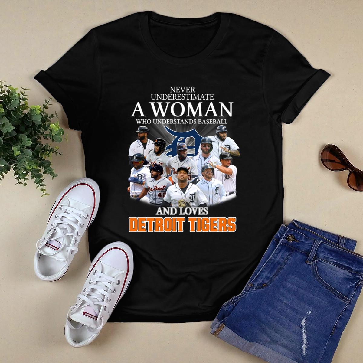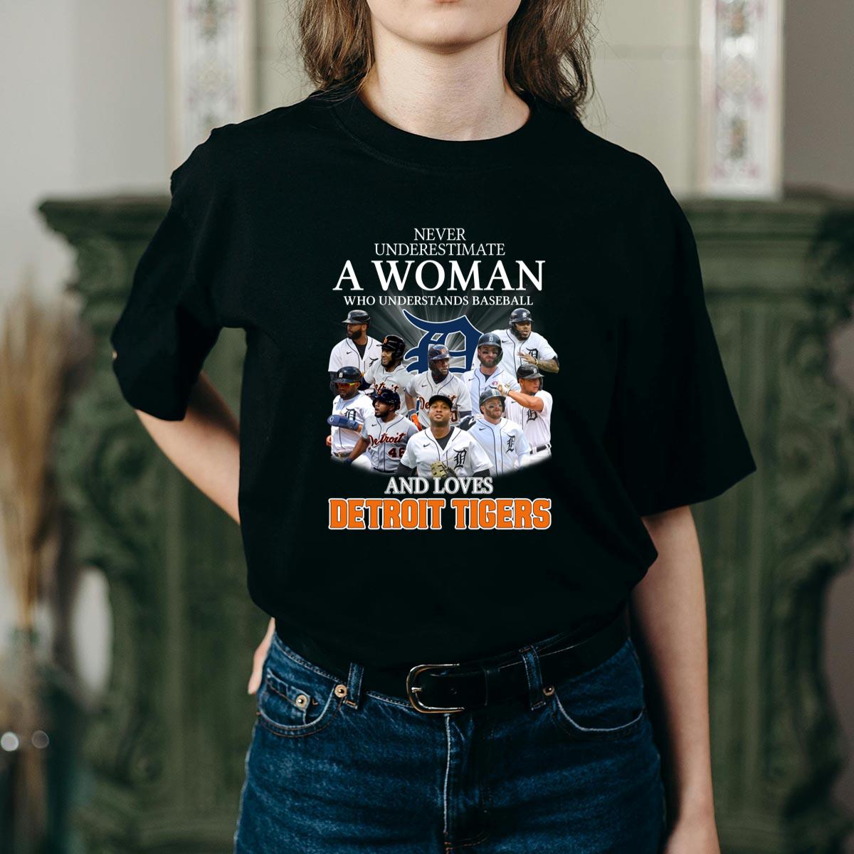 Show your love for both the game and the city with our “Never Underestimate a Woman Who Understands Baseball and Loves Detroit Tigers” T-shirt. Perfect for passionate fans and strong women alike, this shirt combines a bold statement with comfortable style. Whether you’re cheering from the stands, hitting up a themed event, or just enjoying a casual day out, this fan-made design will let everyone know that you mean business when it comes to baseball. Proudly printed in the USA, this shirt is a must-have for any Detroit Tigers supporter.