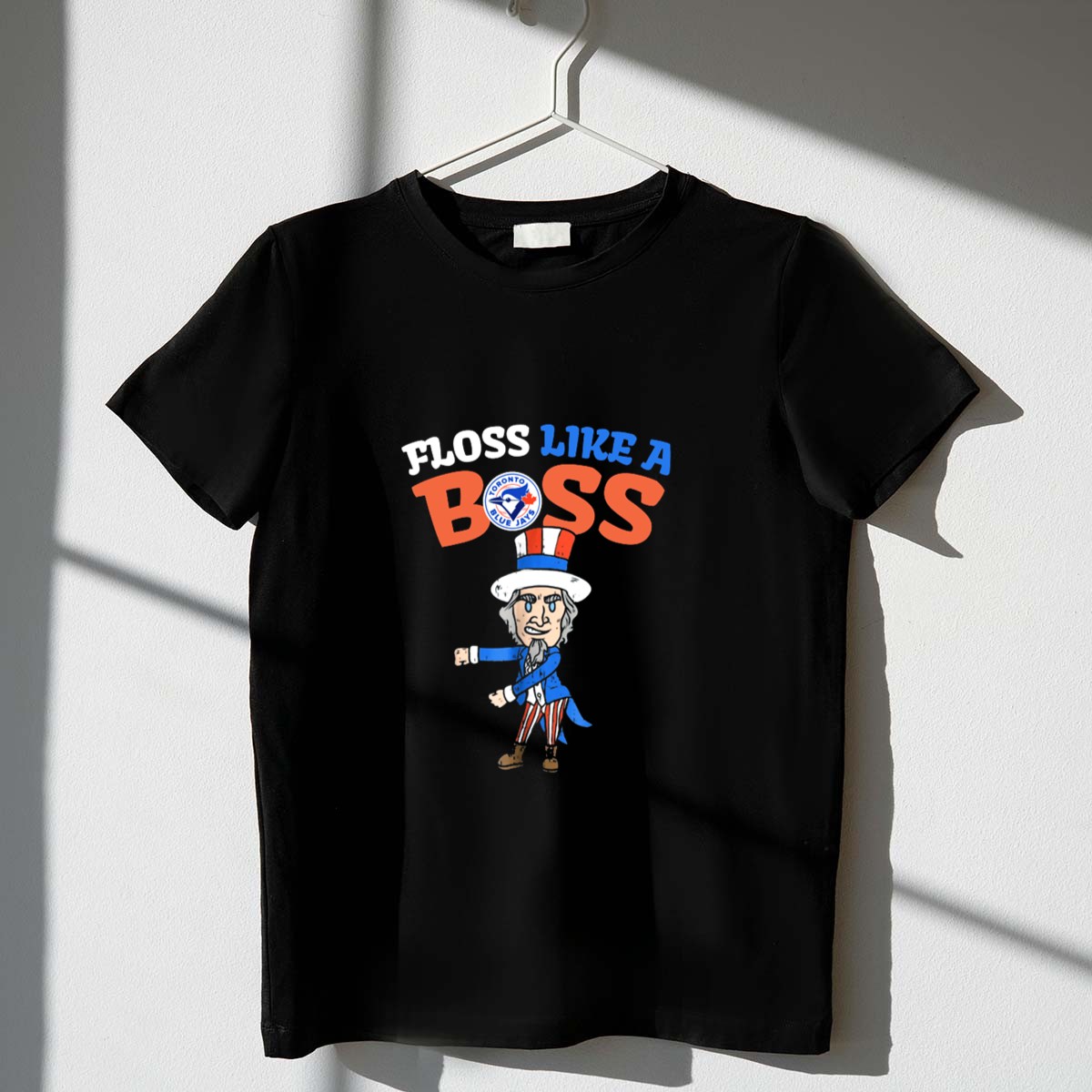 Show off your patriotic spirit and love for the Toronto Blue Jays with our “Floss Like A Boss 4th July” T-shirt! Perfect for fans who enjoy celebrating Independence Day in style, this fun and eye-catching design features a playful Uncle Sam dance graphic that will surely turn heads at casual gatherings, themed events, or daily wear. Crafted for comfort and durability, it’s a must-have for any true Blue Jays supporter looking to make a bold statement.