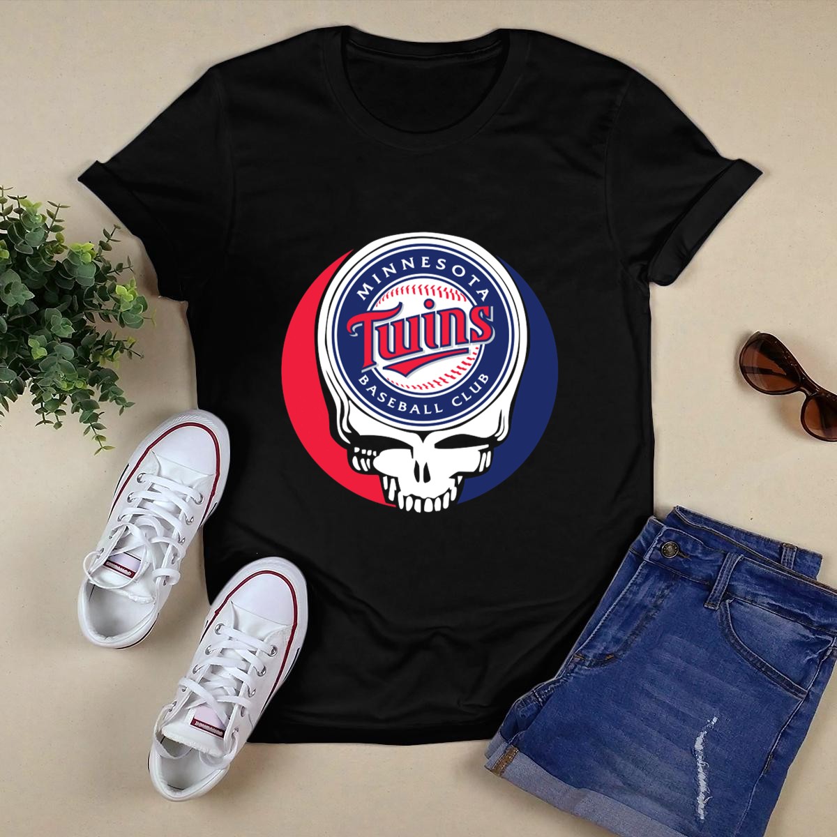 Celebrate your love for baseball and music with this unique Minnesota Twins Baseball Club and Grateful Dead skull logo mashup T-shirt. Perfect for avid fans and music lovers alike, this shirt is designed for casual outings, themed events, or just lounging at home. Made with a fan’s passion in mind and printed in the USA, it’s a standout piece that combines two iconic cultures effortlessly.