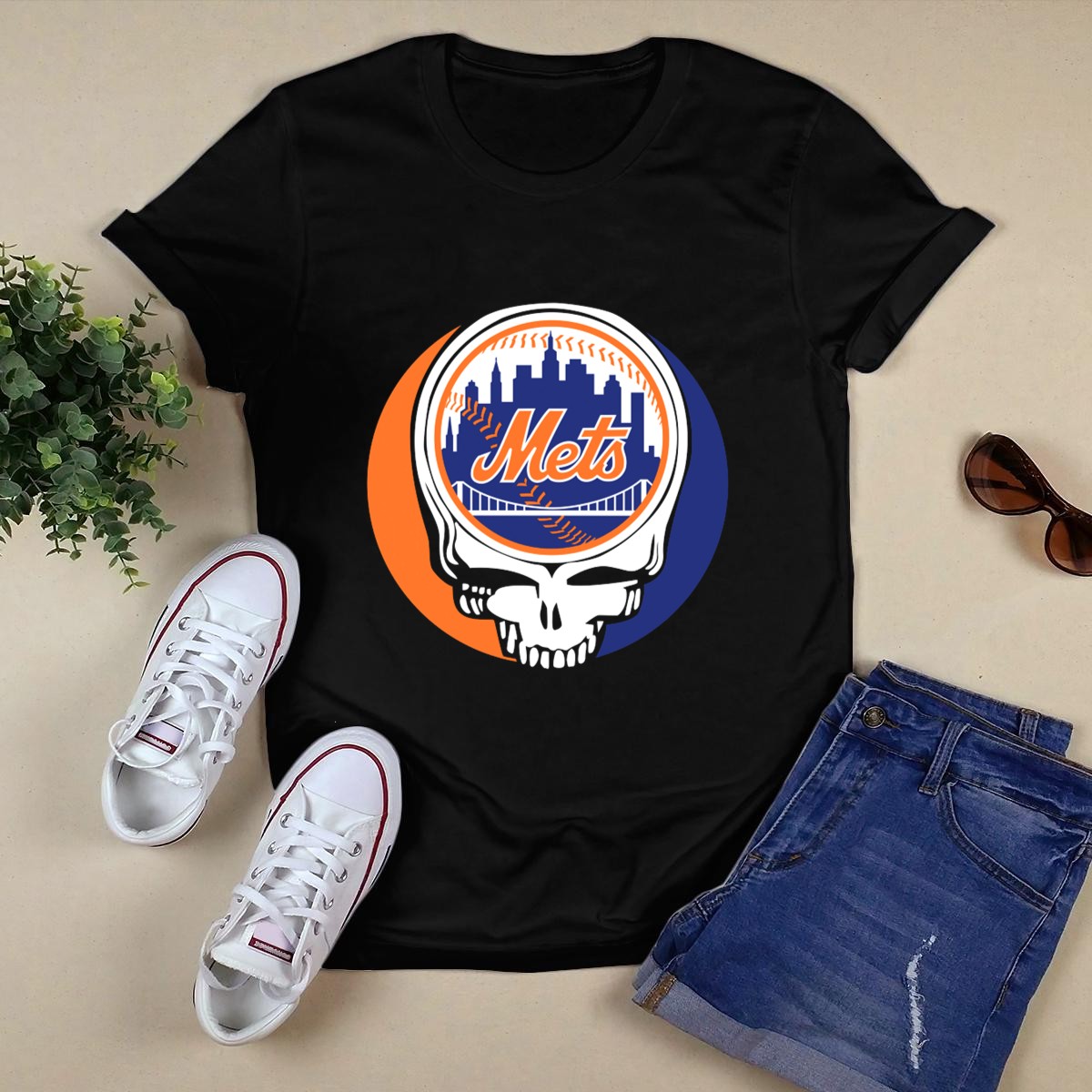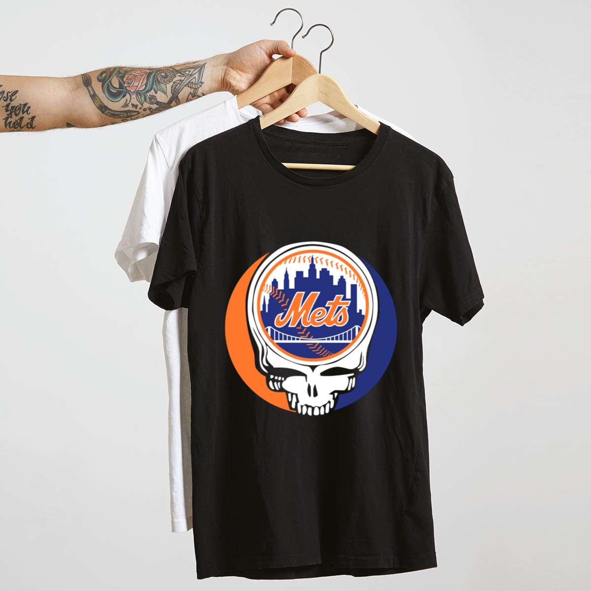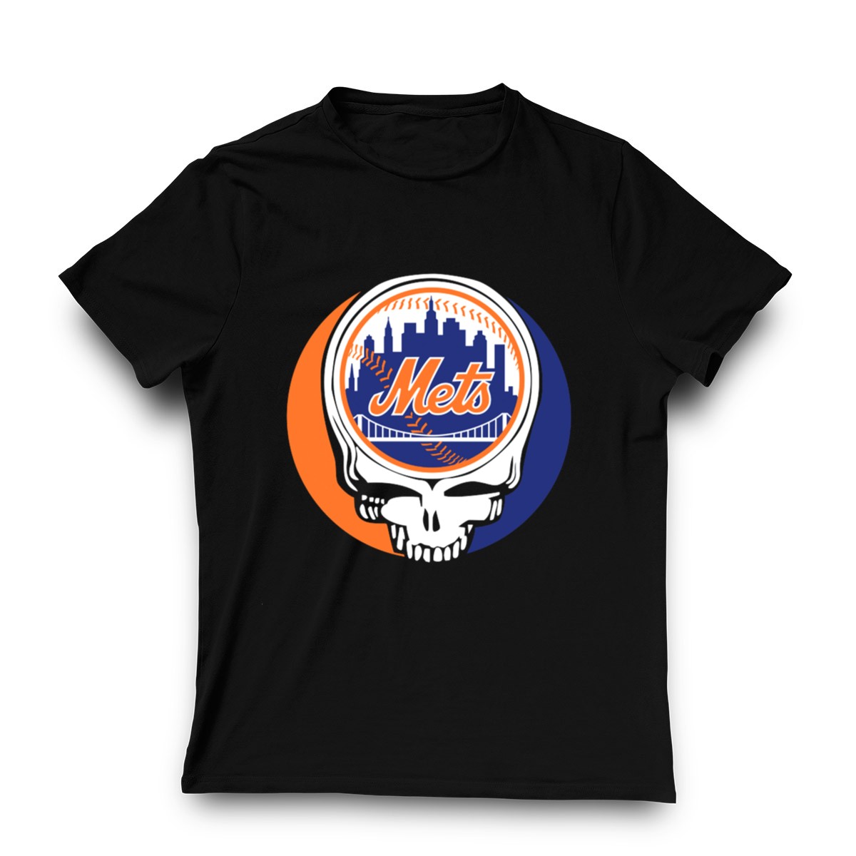 Show off your love for two iconic symbols with our Skull Logo Blending New York Mets Skyline with Grateful Dead T-Shirt. Perfect for die-hard fans and those who appreciate a unique twist on classic designs, this shirt is ideal for casual outings, themed events, or simply showcasing your style on a daily basis. Made with a fan-made design printed right here in the USA, it combines the vibrant spirit of the New York Mets with the laid-back vibe of the Grateful Dead, making it a must-have for any collection.