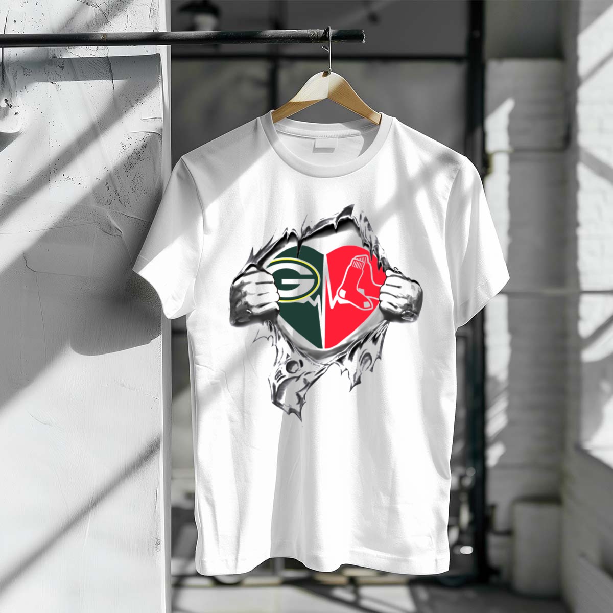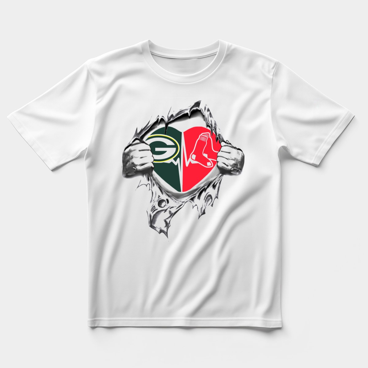 Green Bay Packers & Boston Red Sox Heartbeat Fusion T-Shirt For Fans
