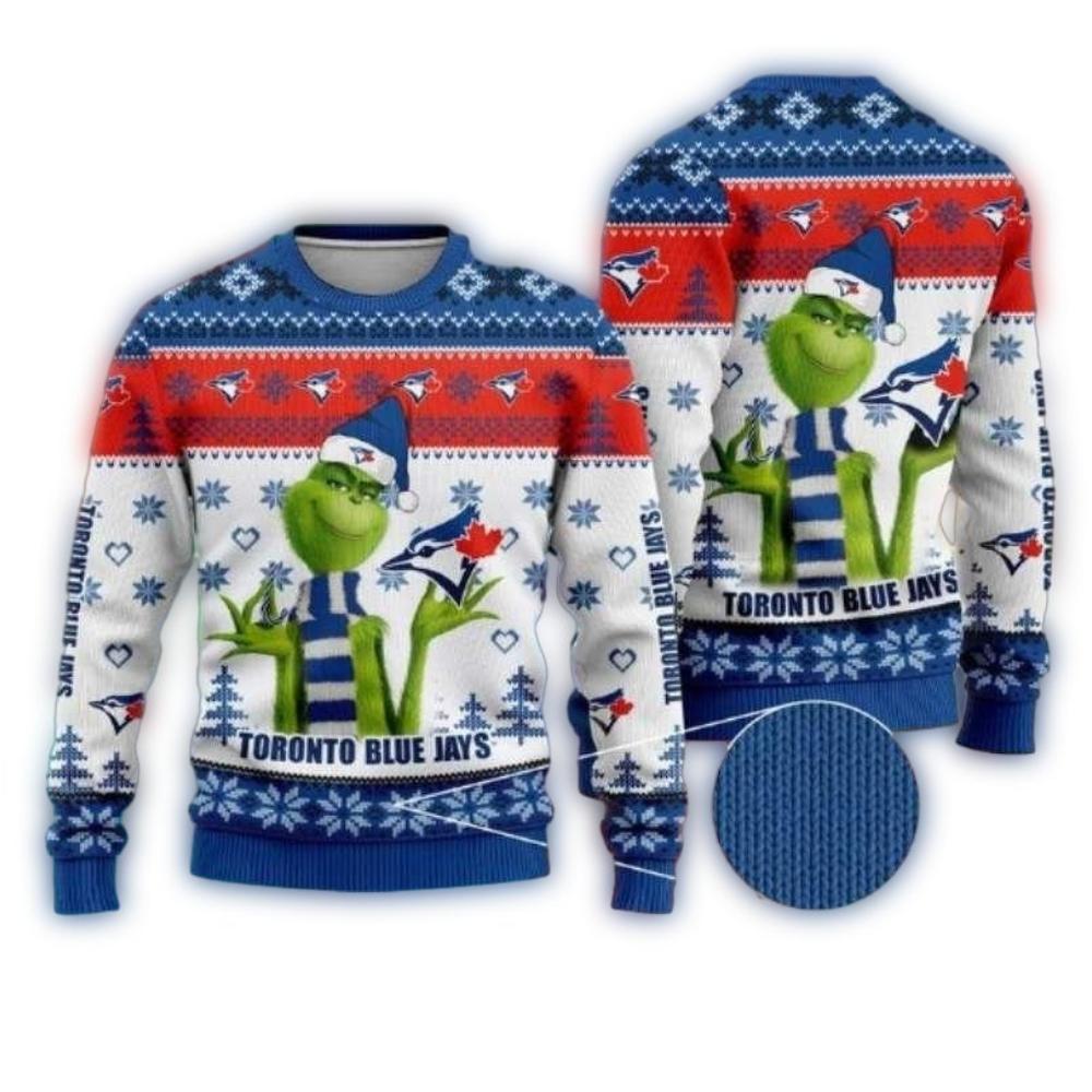 Grinch In Scarf Toronto Blue Jays Christmas Ugly Sweater