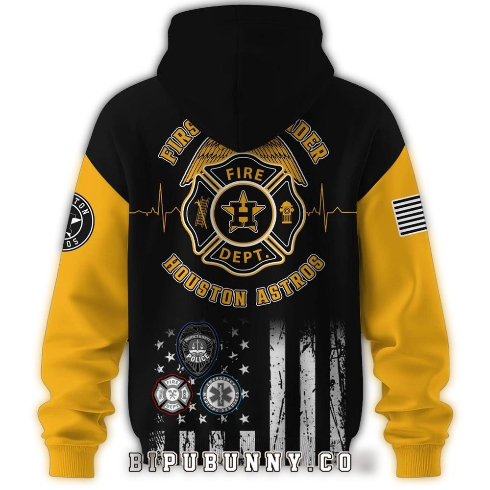 Show your support for the Houston Astros while honoring the spirit of first responders with this all-over printed hoodie. Perfect for fans who want to stay cozy during the game or casual outings, this unique design combines style and comfort, making it an ideal choice for both men and women looking to express their team spirit.