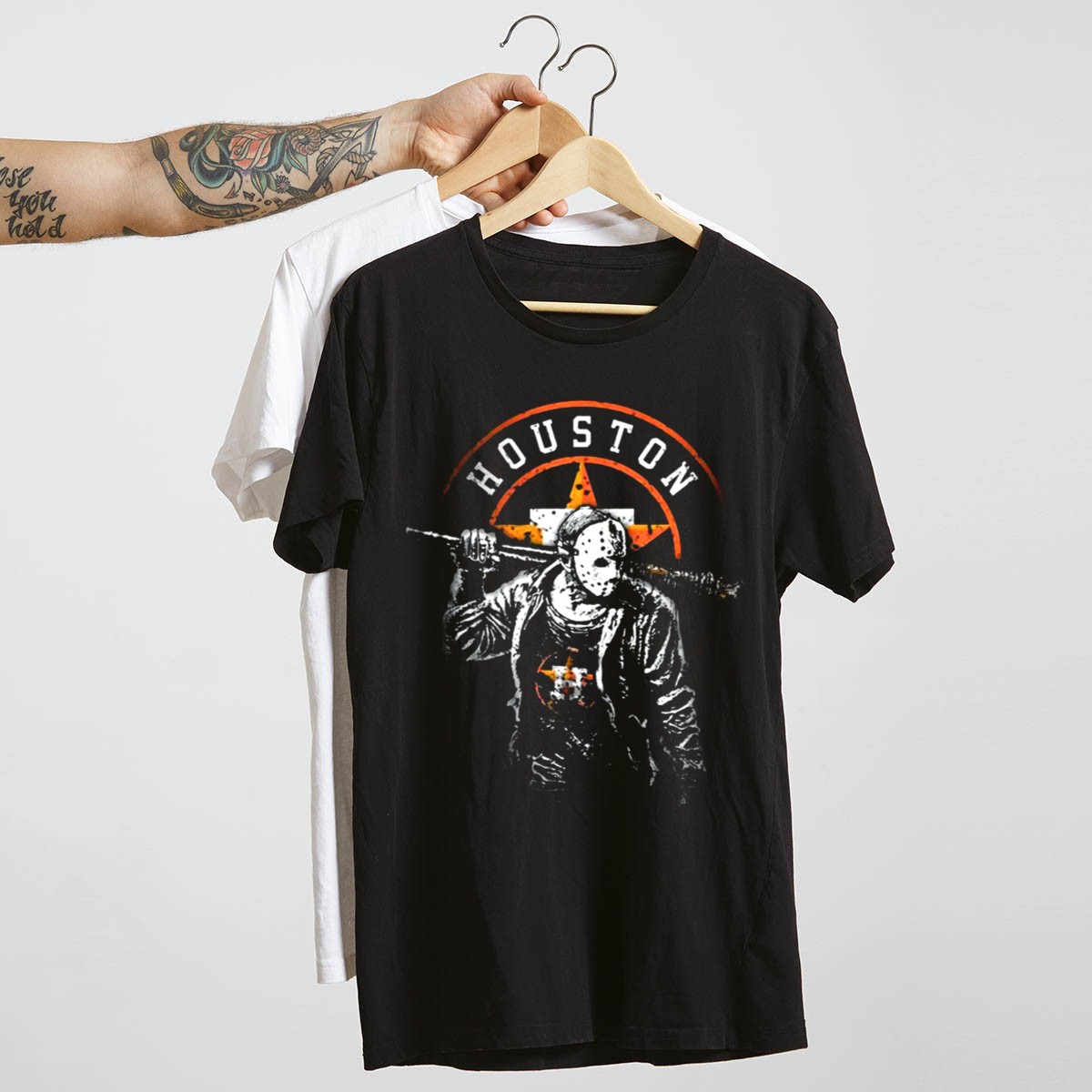 Show off your love for the Houston Astros with our Jason Mask Baseball Bat T-Shirt, a must-have for any true fan. This fan-made design captures the spirit of the game and is perfect for casual wear, themed events, or simply cheering from the stands. Crafted for comfort and style, this shirt features a classic fit that makes it an ideal choice for fans of all ages, ensuring you stay cool and confident while celebrating your team.