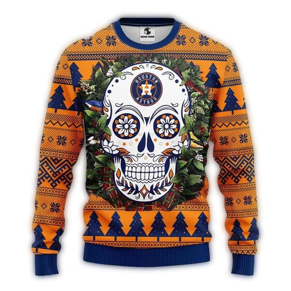 Get ready to celebrate the season in style with our Houston Astros Sugar Skull Ugly Sweater! Perfect for die-hard fans and festive gatherings, this unique sweater combines the spirit of baseball with vibrant sugar skull designs for a look that’s as fun as it is cozy. Whether you’re at a holiday party or lounging at home, this sweater is sure to turn heads and spread cheer!