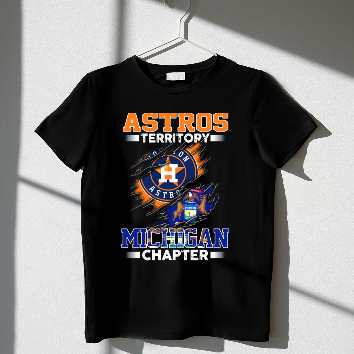 Show your support for the Houston Astros with the Astros Territory Michigan Chapter T-Shirt! Perfect for passionate fans who love to showcase their team spirit, this tee is ideal for casual outings, themed events, or just lounging at home. With its fan-made design printed in the USA, it combines comfort and style, making it a unique addition to any Astros supporter’s wardrobe.