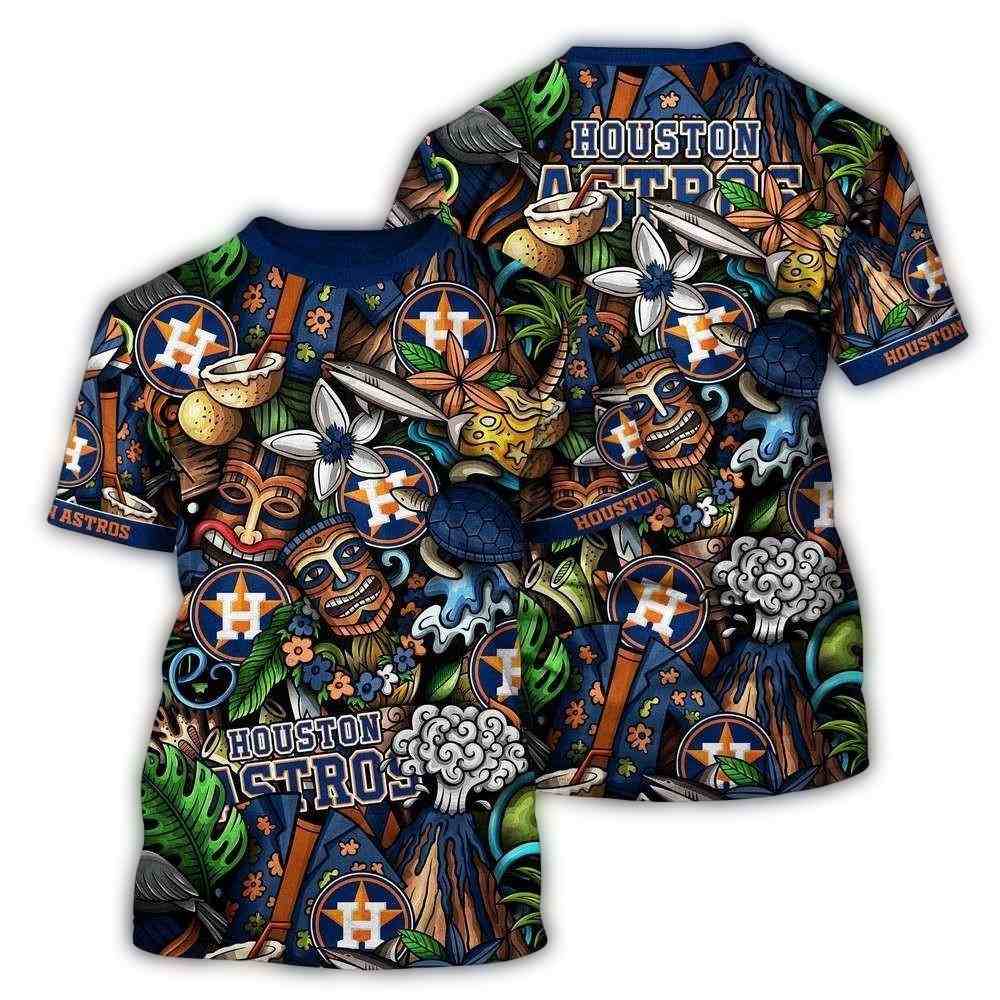 Get ready to show off your team spirit with our Houston Astros Tiki Floral Pattern Tropical All Over Print T-Shirt! Perfect for die-hard fans and casual wearers alike, this shirt brings a vibrant flair to your everyday style. Whether you’re heading to a game, hanging out with friends, or just want to add some fun to your wardrobe, this unique design will make you stand out from the crowd.