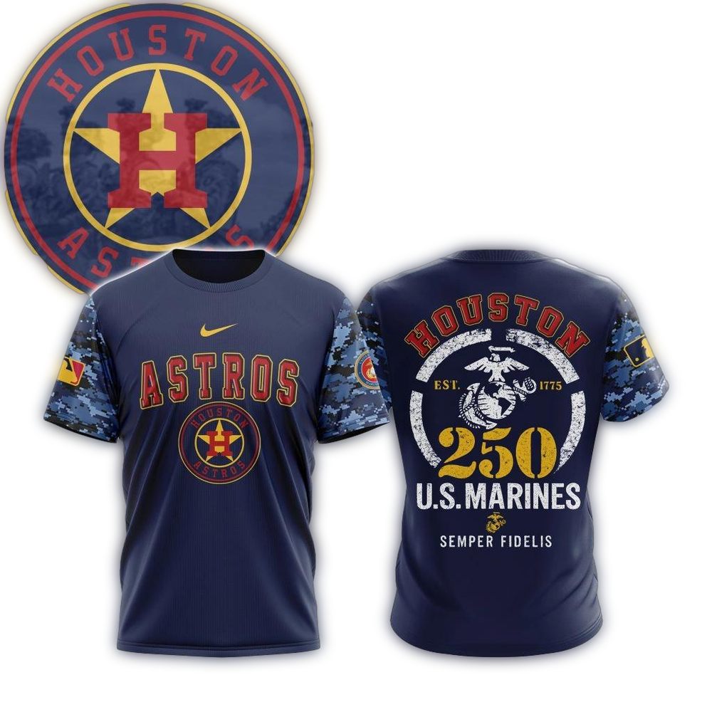 Celebrate the spirit of camaraderie and pride with our Houston Astros USMC 250th Birthday All Over Print T-Shirt! Perfect for fans and veterans alike, this graphic tee is designed for casual outings, tailgating events, or simply showcasing your love for the Astros and the USMC. What sets this shirt apart is its vibrant all-over print that captures the essence of both the team and the celebration in a unique way.