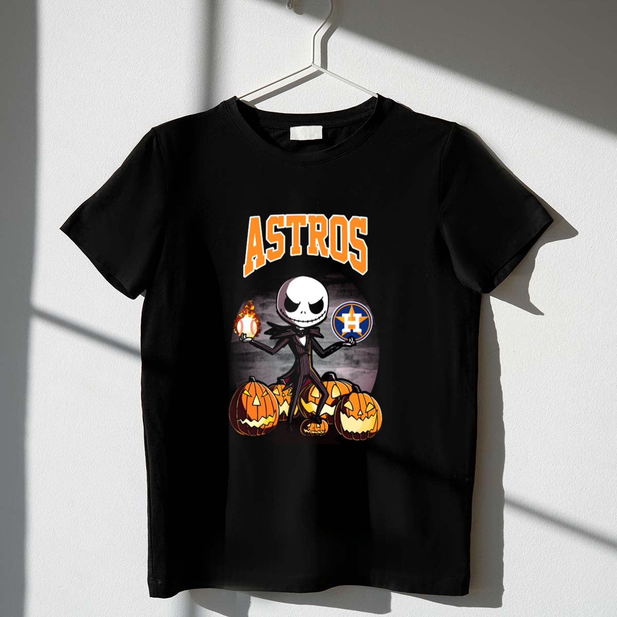 Embrace the spooky spirit of Halloween while celebrating your love for the Houston Astros with this unique Jack Skellington Holding Houston Astros Baseball T-Shirt. Perfect for fans who adore themed events or casual outings, this fan-made design features the beloved Pumpkin King in a playful twist, showcasing your team pride in a fun and creative way. Made for all-season wear, this shirt is an ideal choice for game days, Halloween parties, or just hanging out with friends.