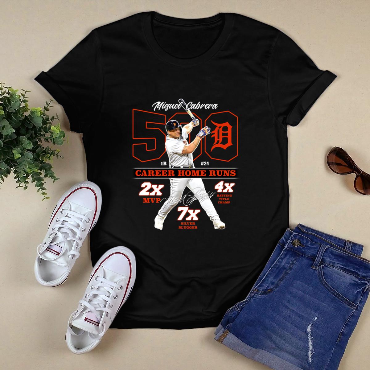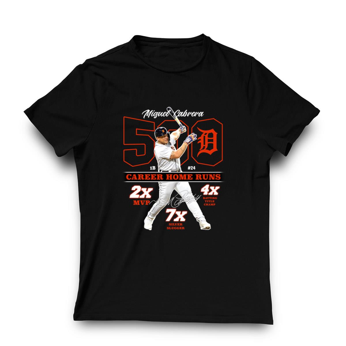 Celebrate the incredible achievements of baseball legend Miguel Cabrera with this striking Gildan 5000 Unisex T-Shirt, featuring a vibrant graphic commemorating his 500 career home runs, two MVP awards, and four batting titles. This fan-made design is perfect for devoted Tigers fans and anyone who admires Cabrera’s impressive career. Ideal for casual outings, themed events, or simply showcasing your love for the game, this shirt is a must-have for any baseball enthusiast.