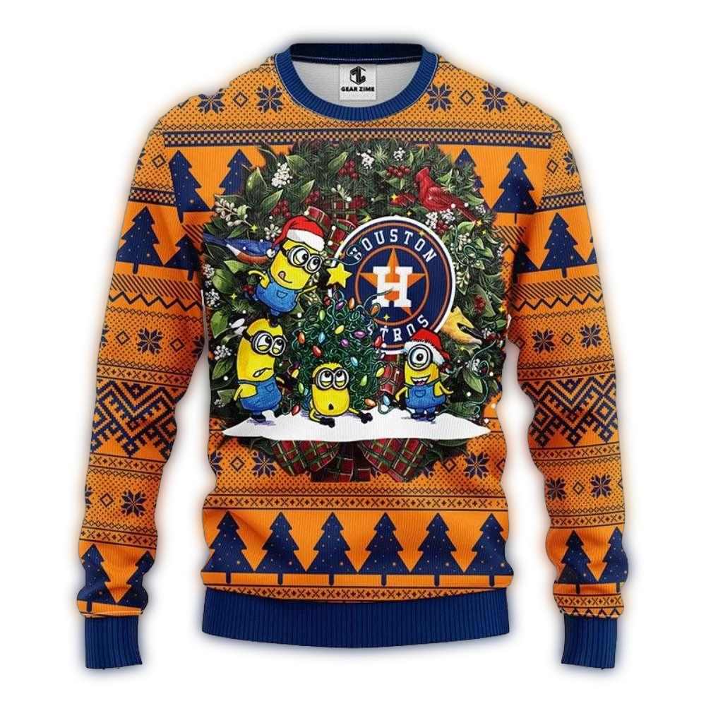Get ready to spread some holiday cheer with our Minions And Houston Astros Christmas Ugly Sweater! Perfect for fans of all ages, this whimsical design combines the lovable Minions with your favorite baseball team, making it an absolute must-have for festive gatherings and cozy nights in. Whether you’re hitting up a holiday party or just lounging at home, this sweater delivers warmth and a splash of fun that’s sure to turn heads!