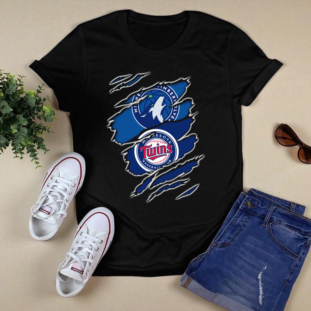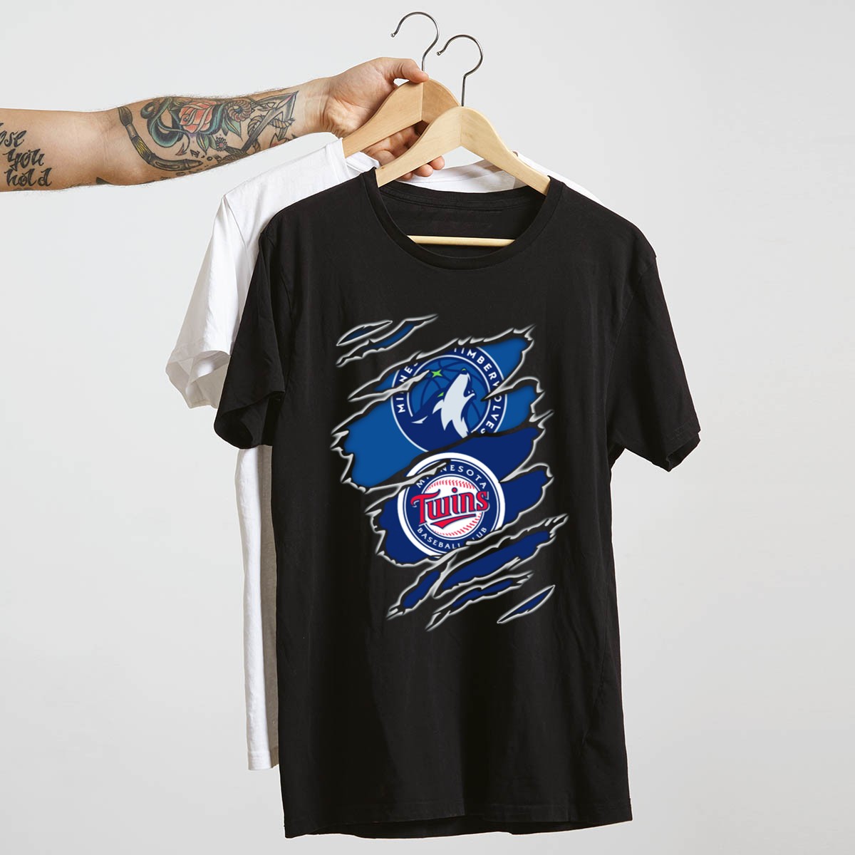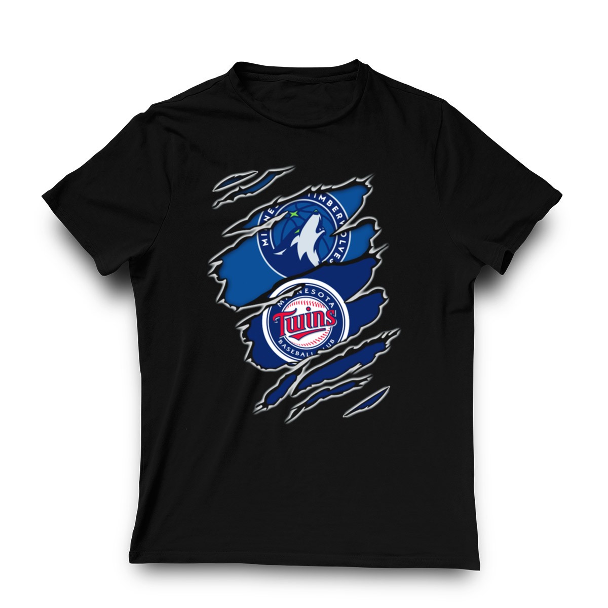 Minnesota Timberwolves & Twins Baseball Logo Claw Marks T-Shirt