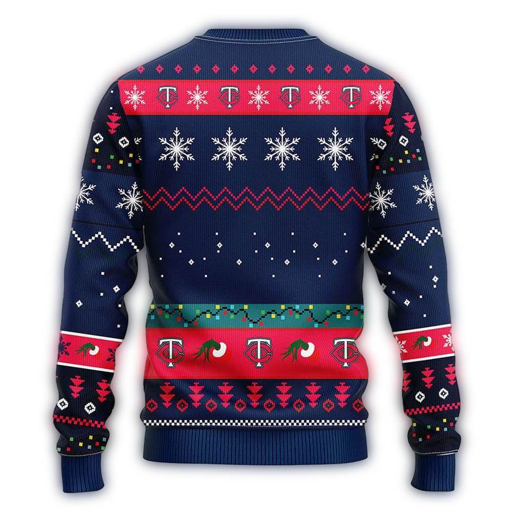 Get ready to spread some holiday cheer with our Grinch Hold Logo Minnesota Twins Light Christmas Ugly Sweater! Perfect for Twins fans and holiday enthusiasts alike, this festive garment is ideal for holiday parties, cozy nights at home, or cheering on your team while enjoying the winter festivities. With its unique blend of fun and flair, this sweater is sure to make you the life of the party!