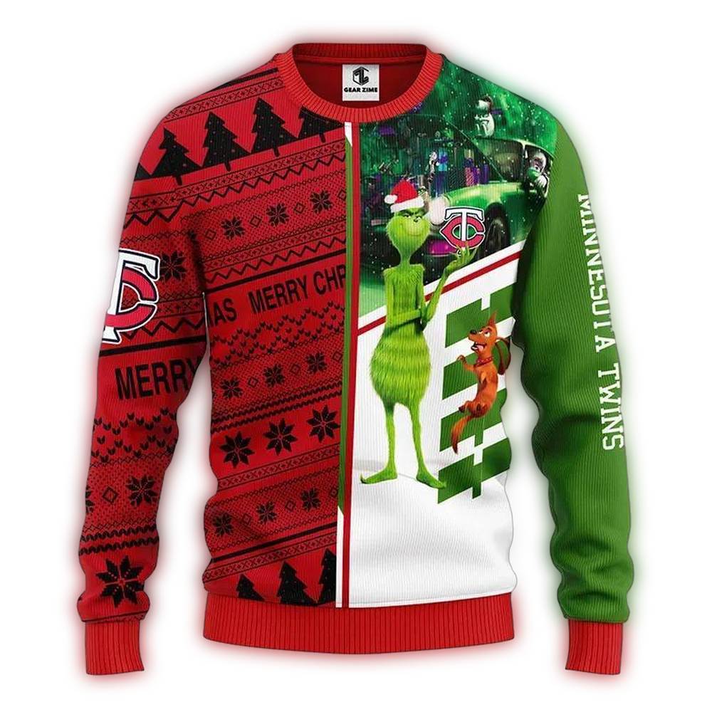Get ready to celebrate the holidays with a twist of fun in our Minnesota Twins Grinch and Scooby Doo Christmas Ugly Sweater! Perfect for fans of all ages, this quirky piece is ideal for holiday parties, cozy nights at home, or cheering on your favorite team while staying snug. With its unique design that brings together beloved characters, this sweater is sure to turn heads and spread holiday cheer wherever you go!