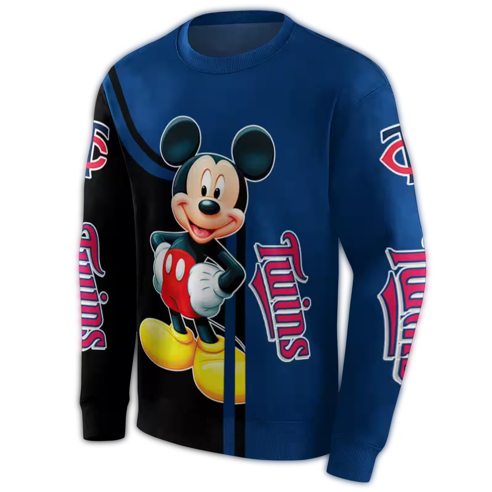 Show your love for the Minnesota Twins with this exclusive Mickey Mouse all-over printed sweatshirt. Perfect for fans of all ages, this cozy piece is ideal for game days, casual outings, or simply lounging around the house. Its unique design combines sports enthusiasm with a touch of Disney magic, making it a standout addition to any streetwear wardrobe.