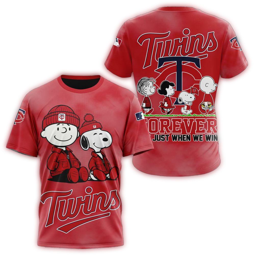 Celebrate your love for baseball and timeless cartoons with our Minnesota Twins Peanuts and Snoopy All-Over Printed T-Shirt! Perfect for fans of all ages, this shirt is your go-to choice for game days, casual outings, or simply showing off your unique style. With its vibrant graphics featuring beloved characters, it’s a standout piece that adds a playful touch to any outfit.