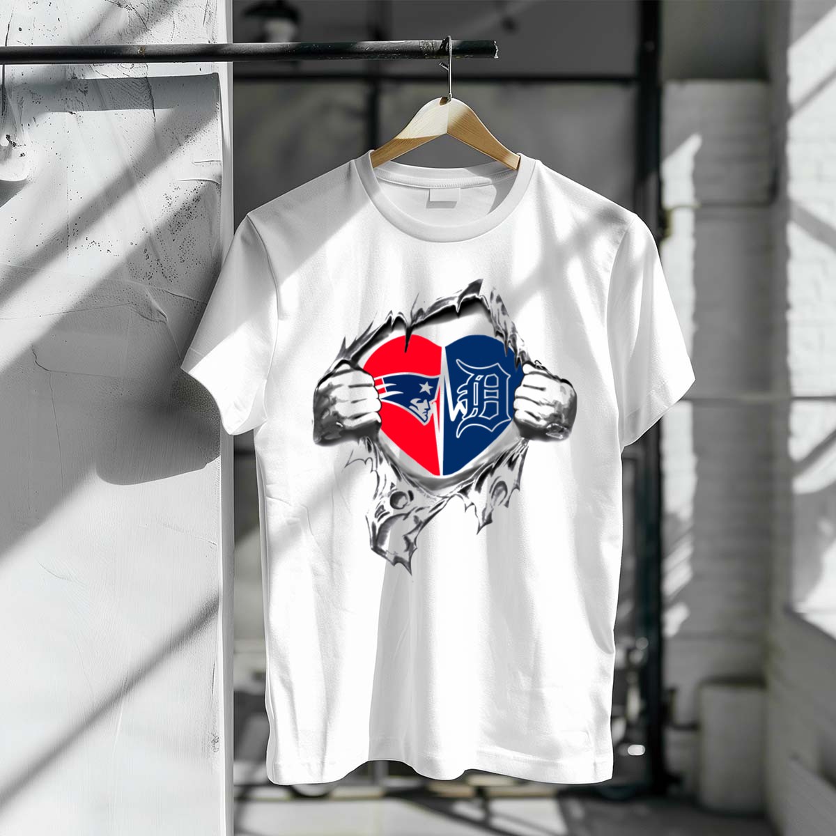 Show your love for both the New England Patriots and Detroit Tigers with this unique heart logo split T-shirt! Perfect for passionate fans, this shirt features an eye-catching design of tearing hands that beautifully combines the spirit of two iconic teams. Ideal for casual outings, themed events, or simply showing off your fandom in everyday life, this shirt is a must-have for any sports enthusiast. Plus, it’s fan-made and printed in the USA, ensuring quality and originality.