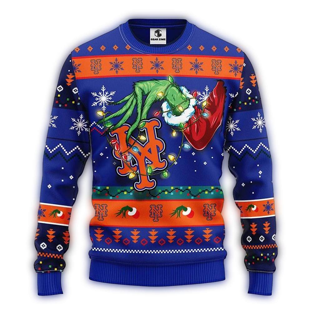 Get ready to spread some holiday cheer with our New York Mets Grinch Light Ugly Sweater! Perfect for die-hard Mets fans, this festive piece is ideal for holiday parties, cozy nights in, or showing your team spirit during the winter season. With its playful design inspired by the beloved Grinch, this sweater is sure to bring smiles and warmth while keeping you stylishly comfortable.