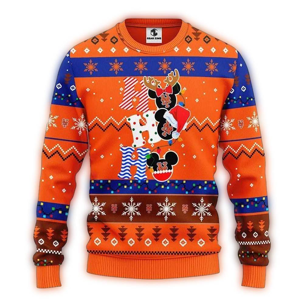 Get ready to show off your team spirit with the New York Mets Mickey Hohoho Christmas Ugly Sweater! Perfect for die-hard fans and festive fun-seekers alike, this sweater adds a touch of holiday cheer to your game day attire or cozy nights at home. Its unique design combines the beloved Mickey theme with a sporty twist, making it the ultimate statement piece for holiday parties or winter gatherings.
