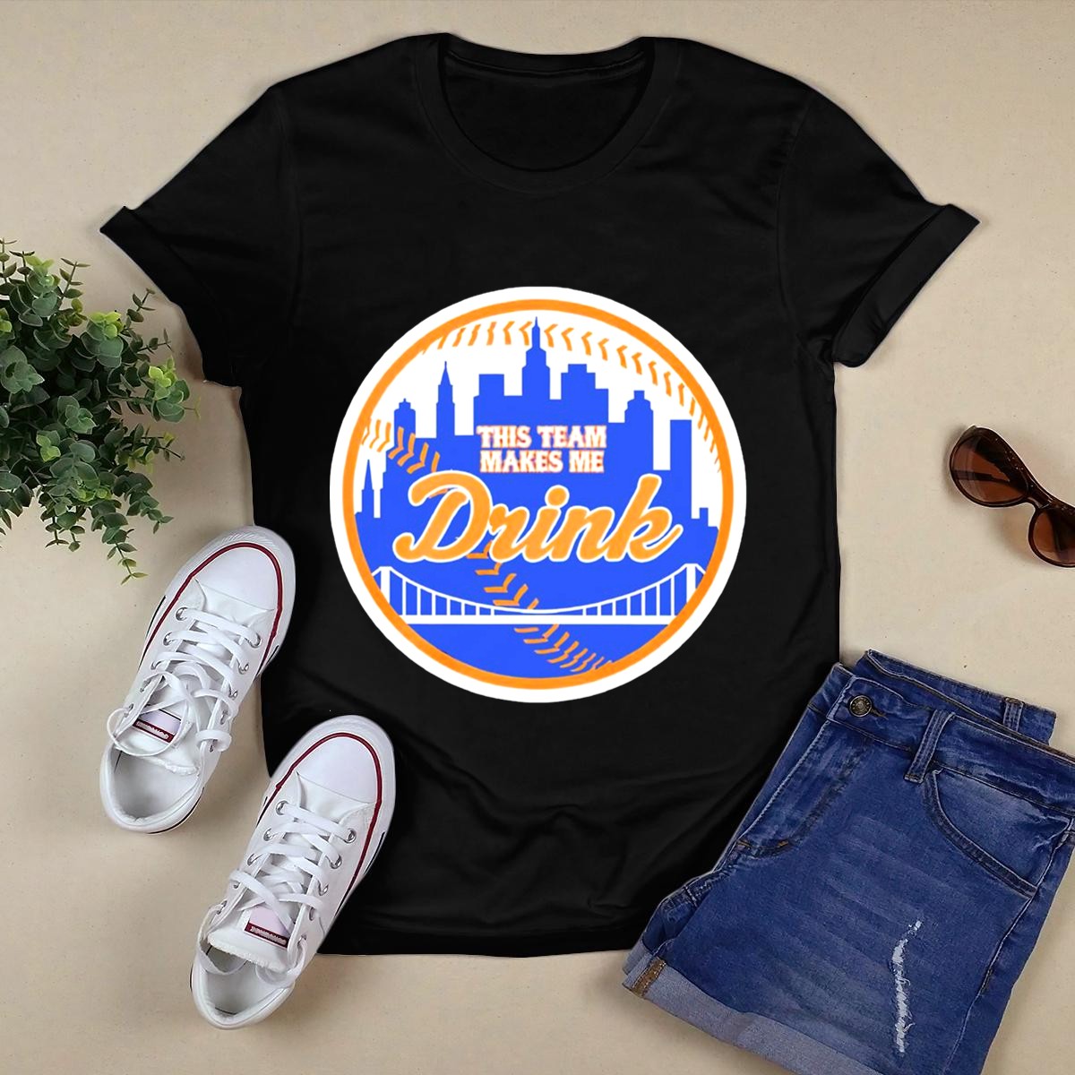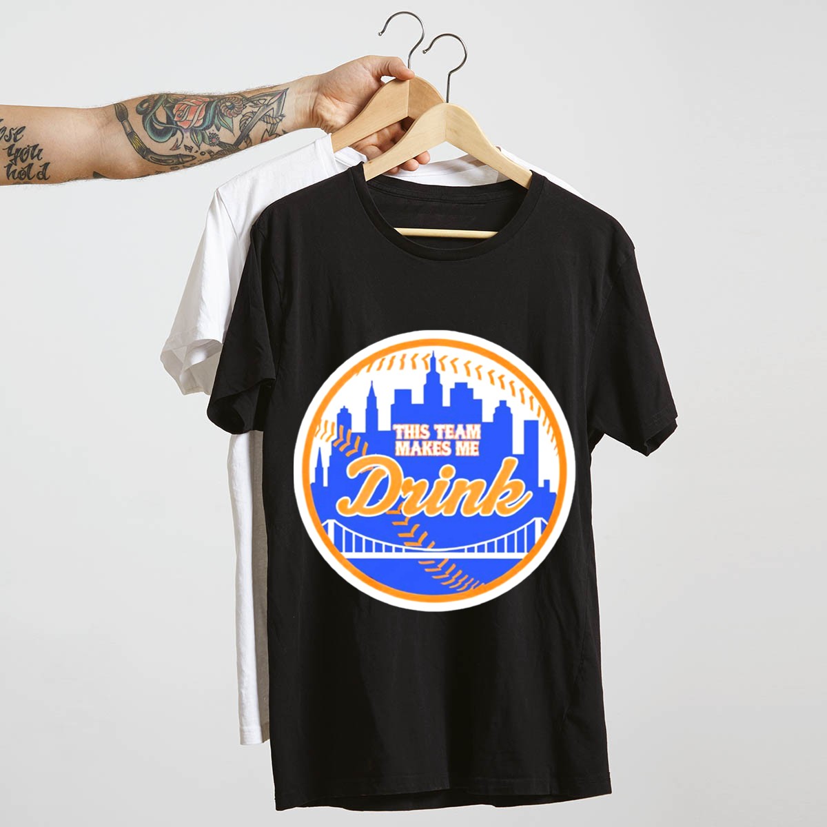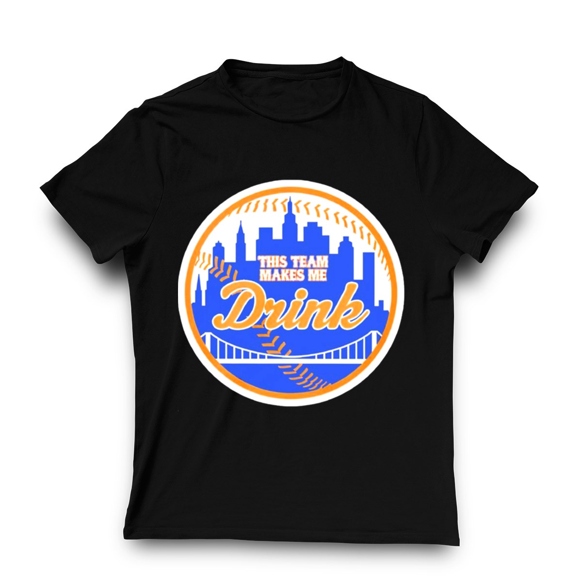 Show off your love for the New York Mets with this fun and stylish “This Team Makes Me Drink” T-shirt! Perfect for die-hard fans and casual supporters alike, this shirt is ideal for game days, themed events, or simply lounging around while cheering for your favorite team. The unique fan-made design, printed right here in the USA, adds a touch of personality to your everyday wear, making it a must-have for any baseball enthusiast.